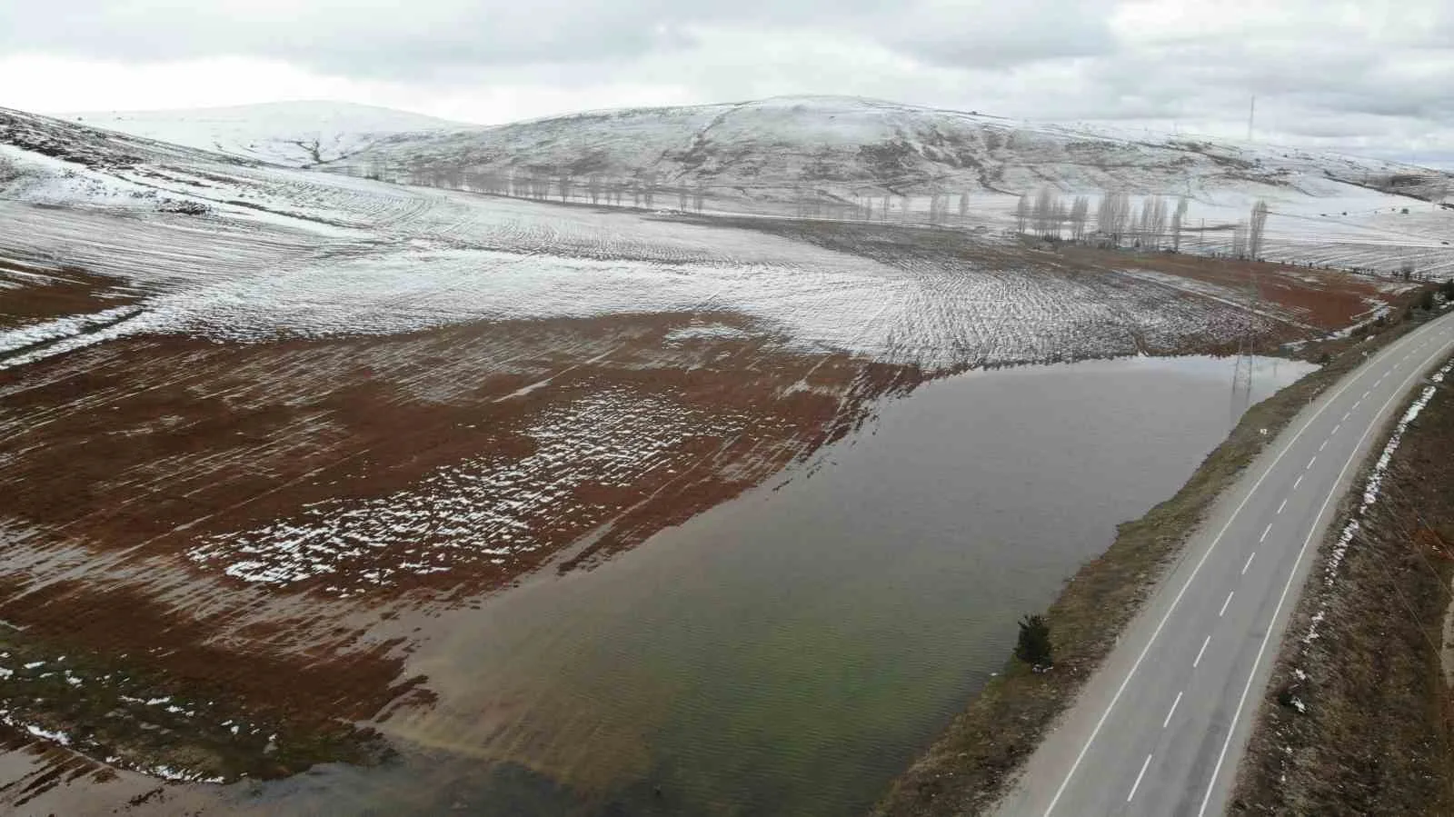 Yoğun kar yağışının yaşandığı, kış mevsiminin bu sene çetin geçtiği Bayburt’ta, ekim yapılan tarlalar kar altında kaldı. Karların erimesiyle de bazı tarlalarda göller oluştu. Yaklaşık 35 bin hektar alandaki ürünlerde kök çürümesi meydana gelirken, rekoltenin bu yıl düşük olması bekleniyor.