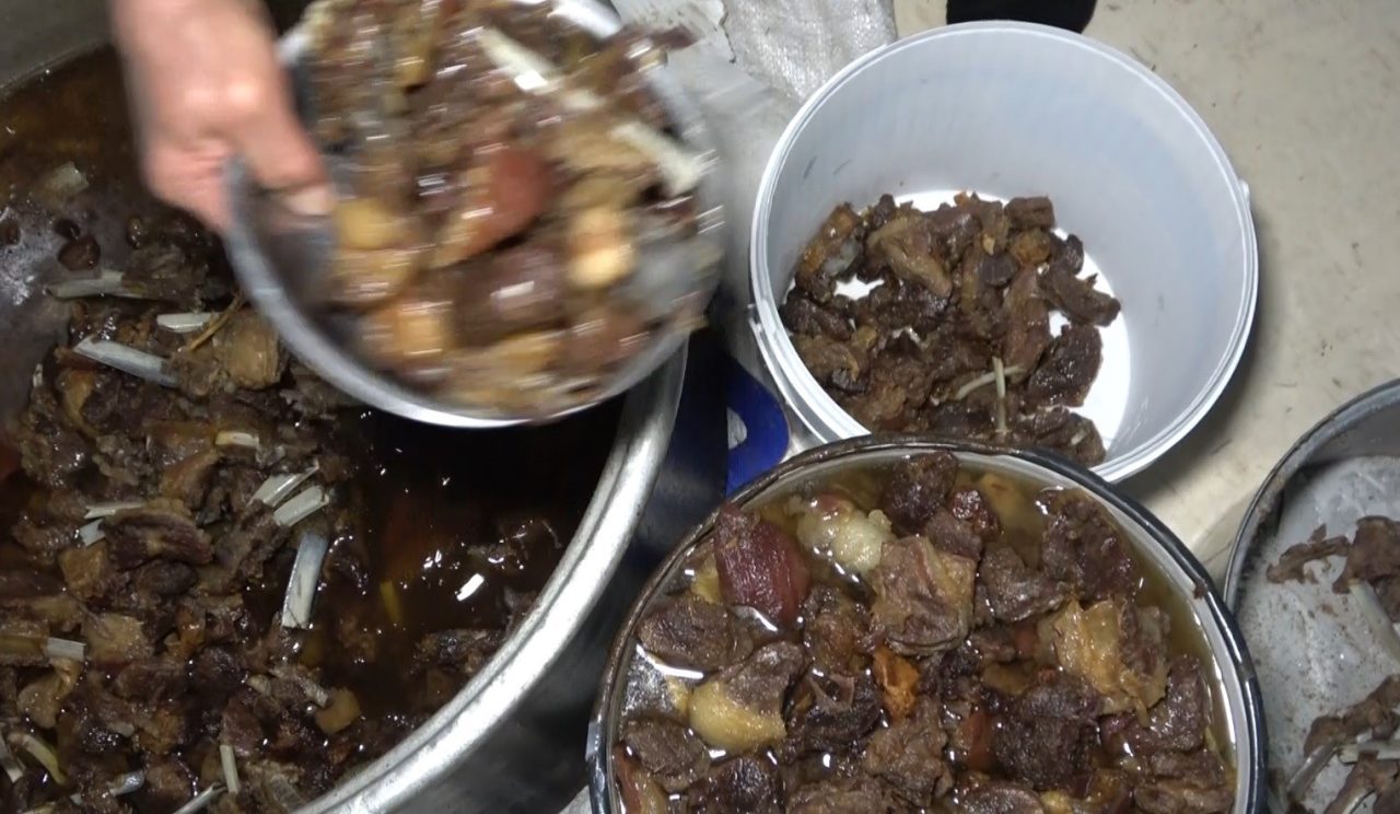 Bayburt’un köylerinde kışlık kavurma yapımı için kazanlar kuruldu, meşe ateşinde etler kavrularak kış için stoklanıyor.
