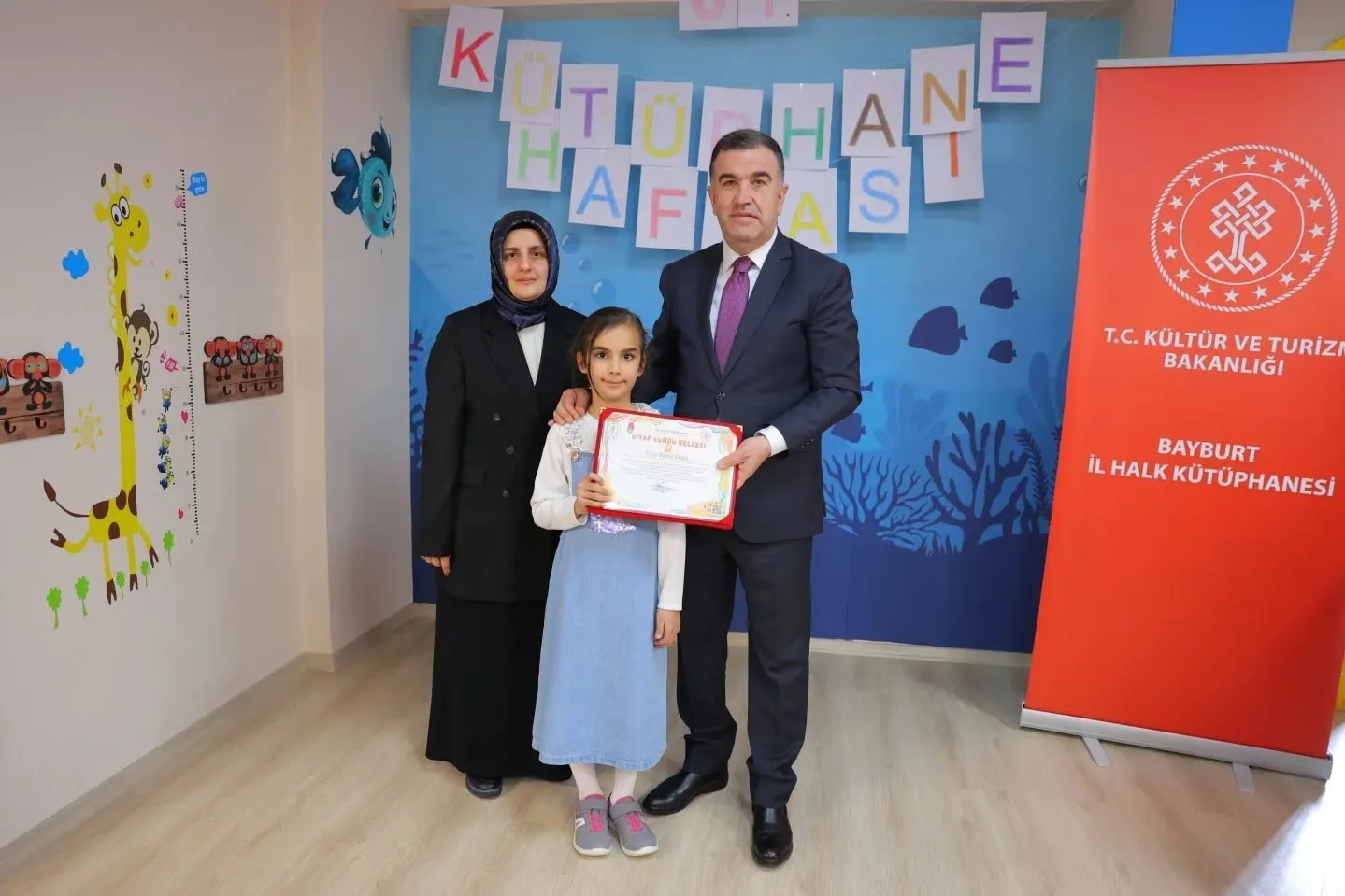 Programa katılan Bayburt Valisi Mustafa Eldivan, çocuklara çeşitli tavsiyelerde bulunarak, kitap okumanın önemini anlattı. Kitap analizlerinin, kritiklerinin yapıldığı etkinlikte, son bir yıl içerisinde kütüphaneden en çok kitap ödünç alan yetişkin okuyuculara ’Yılın Okuru’, çocuk okuyuculara ise ’Kitap Kurdu’ belgeleri Vali Eldivan tarafından verildi.
