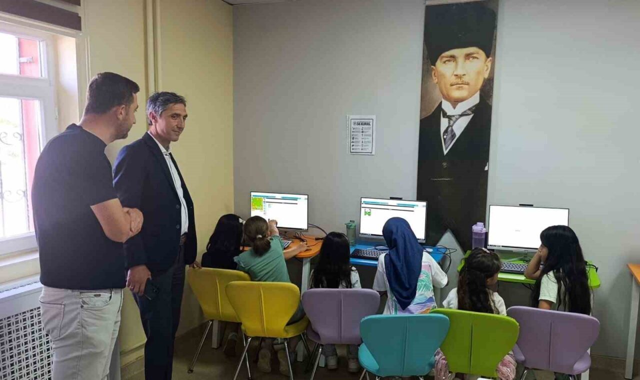 Yaz tatilini hem eğlenerek hem de öğrenerek geçirmek isteyen öğrenciler için Şehit Nevzat Kaya İlkokulunda açılan robotik kodlama ve futbol kursları yoğun ilgi görmeye devam ediyor. Bayburt İl Milli Eğitim Müdürü Ömer Faruk Kahraman, kurslarda öğrenim gören öğrencileri ziyaret ederek, kursların işleyişi hakkında öğretmenlerden bilgi aldı.