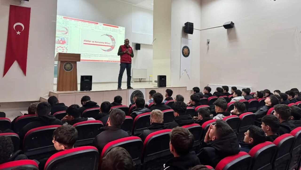 Okulda düzenlenen seminerde, afetlere karşı bireysel farkındalığın artırılmasına yönelik bilgiler paylaşılırken, öğrencilerin korunma bilinci kazanmasına katkı sunulması amaçlandı.