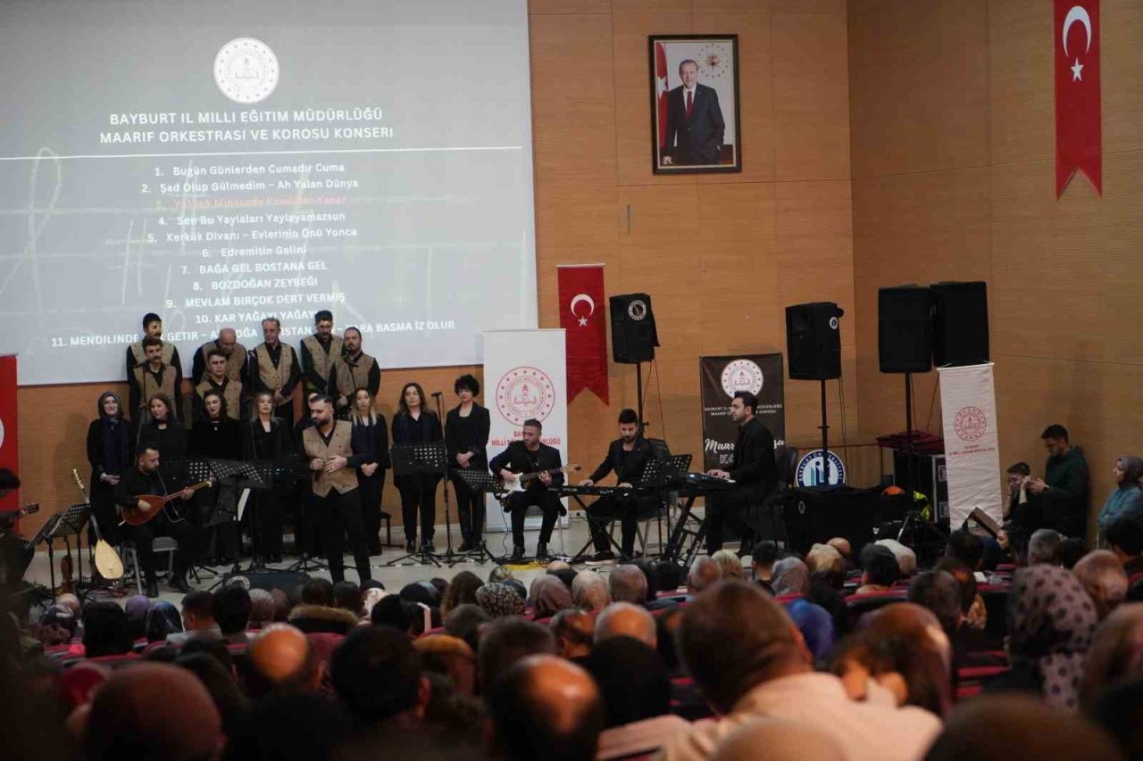 Bayburt İl Milli Eğitim Müdürlüğü tarafından düzenlenen konserde, kentte farklı kademelerde ve okullarda görev yapan öğretmenlerden oluşan Maarif Orkestrası ve Korosu sahne aldı. Konserde, çeşitli türküler söylendi.