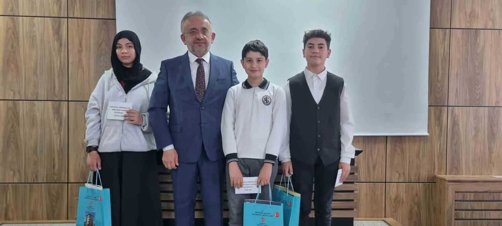BAYBURT’TA EZBERE ŞİİR OKUMA YARIŞMASINDA DERECEYE GİREN ÖĞRENCİLER ÖDÜLLENDİRİLDİ