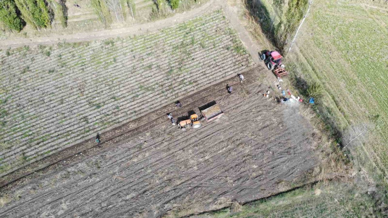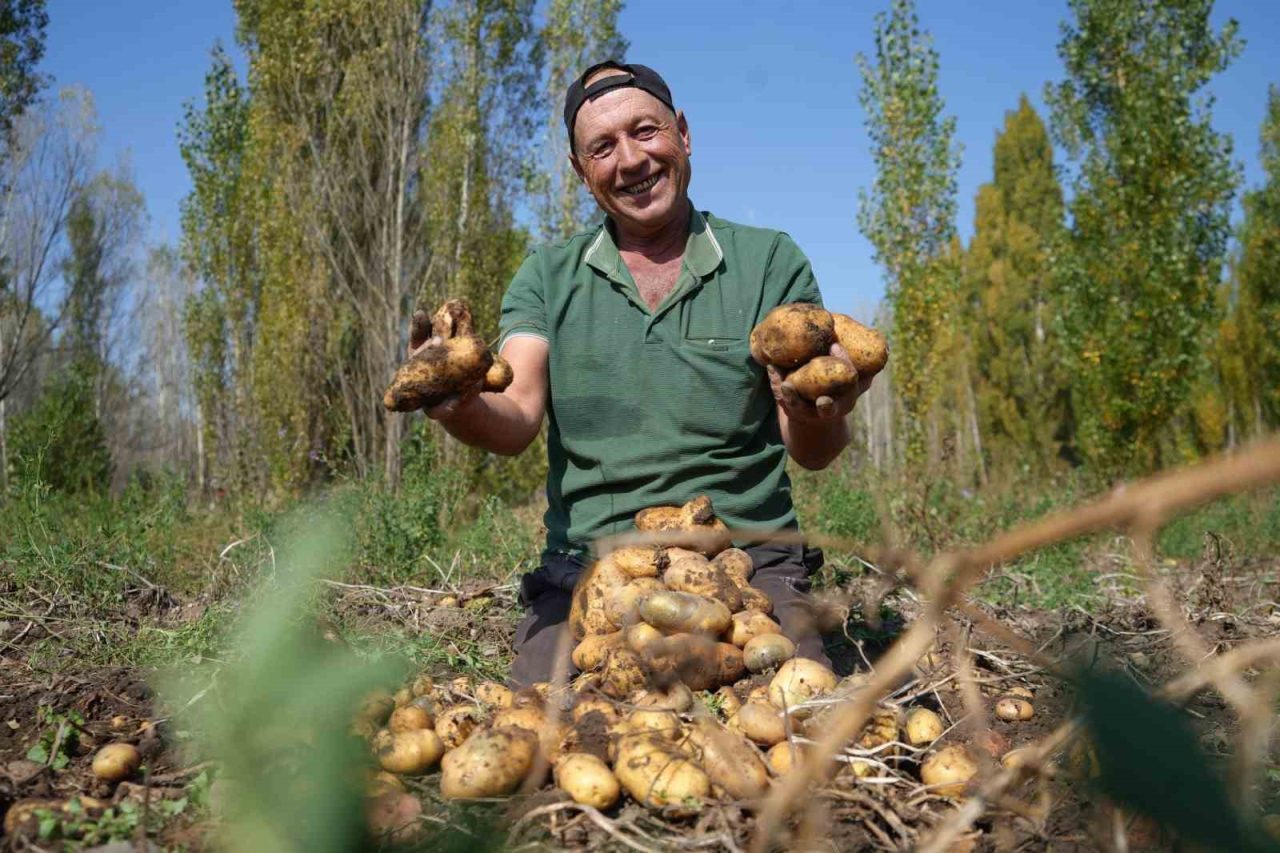 Ailesiyle birlikte el birliğiyle yapılan hasatta patatesin tarladan sofraya uzanan zahmetli yolculuğu sona ererken, yüksek verim hem üreticiyi hem de köy halkını sevindirdi.