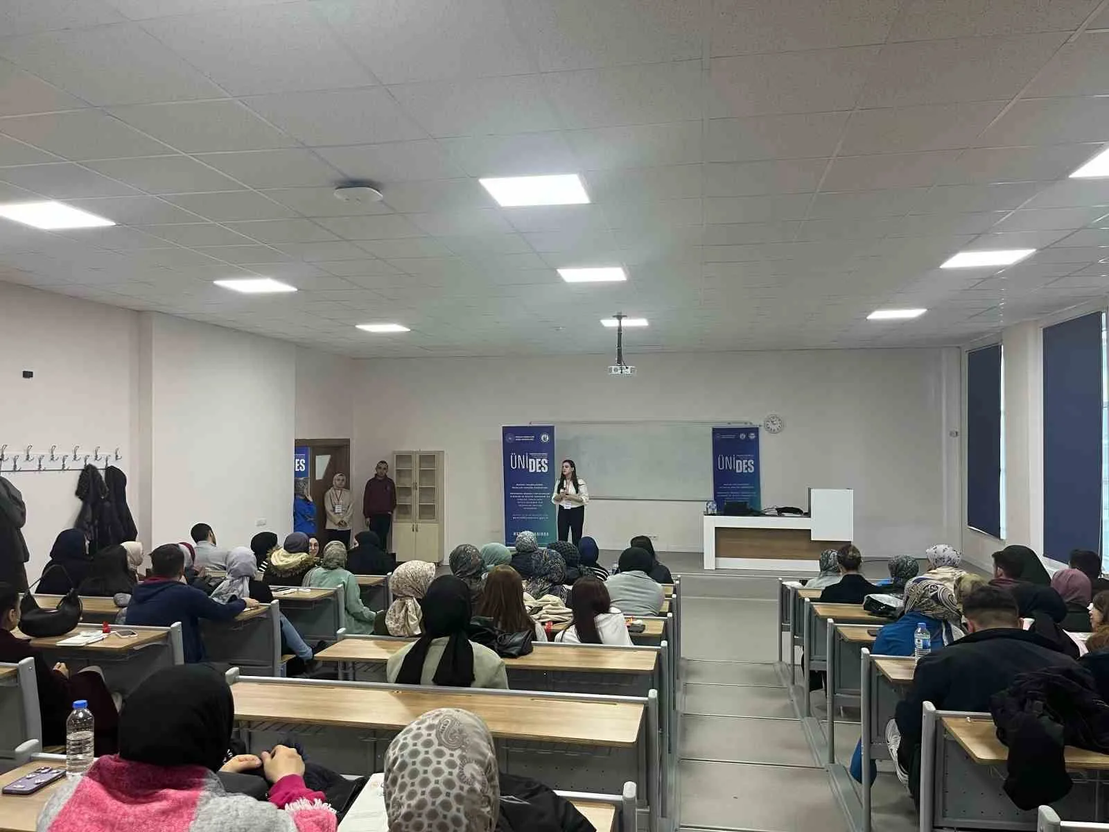 Üniversitede düzenlenen programda öğrencilere, kulak sağlığı ile alakalı bilgiler aktaran Odyolog Ayşenur Kobal, kulak sağlığının korunmasının, sadece işitme değil denge, iletişim ve yaşam kalitesi açısından ne kadar önemli olduğunu anlattı. Kobal, kulakta oluşabilecek enfeksiyonlar, işitme kaybının erken belirtileri, yüksek sese maruz kalmanın zararları hakkında bilgi vererek, düzenli işitme testlerinin önemine değindi. Öğrencilere konuyla alakalı bilgilerin verilmesinin ardından denge hareketleri yapıldı, öğrencilerden gelen sorular yanıtlandı.