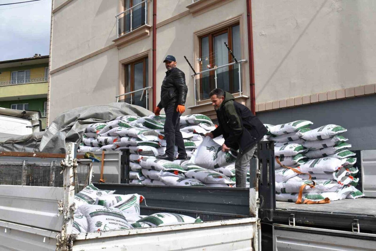 İl genelinde nohut üretiminin artırılması ve tarım arazilerinin daha etkin kullanılması amacıyla yürütülen destek programında başvuru şartlarını taşıyan üreticilere hibe destekli tohumları verildi.