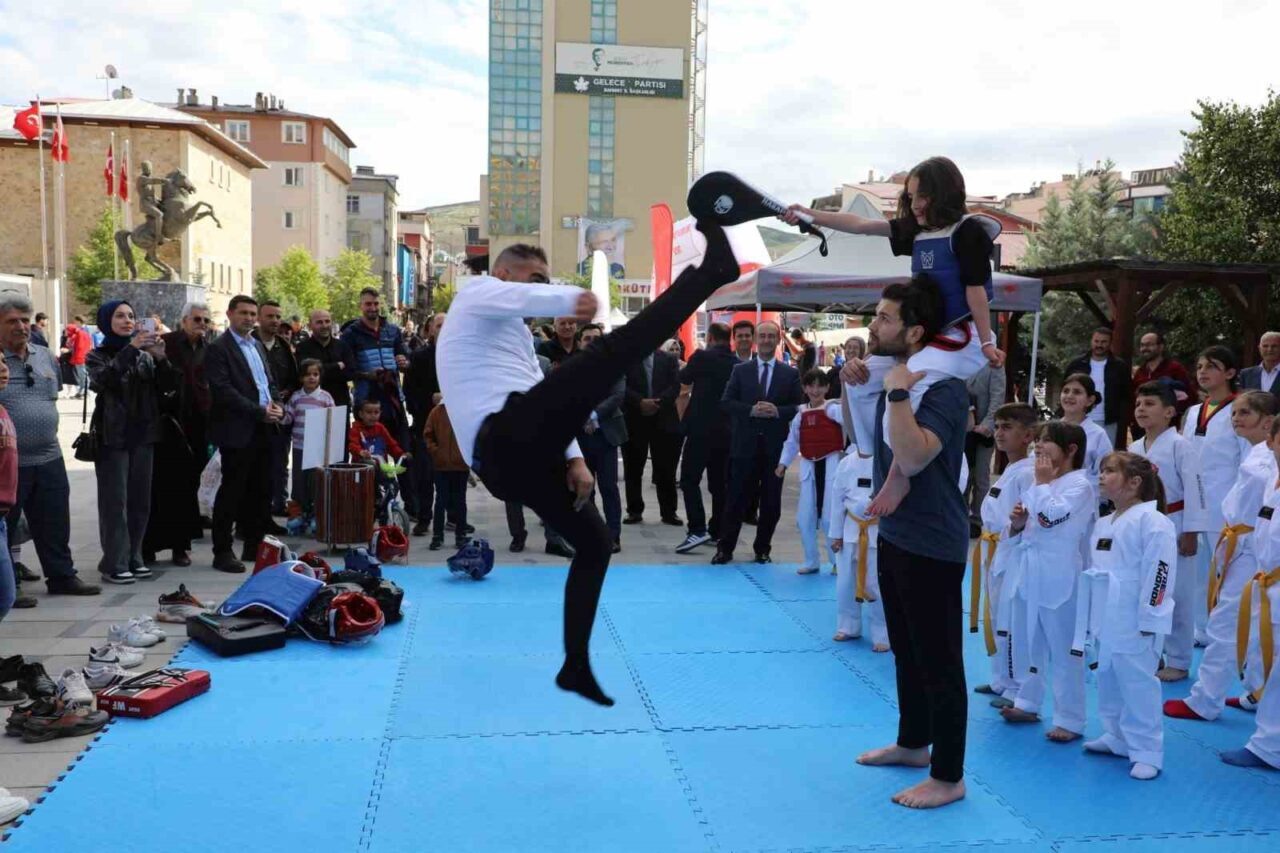 Bayburt Saray Bahçesi’nde düzenlenen etkinlikte, farklı yaş gruplarından katılımcılar çeşitli spor branşlarıyla tanıştı. Açılışta; basketbol, voleybol, okçuluk, tekvando, judo, masa tenisi, atletizm, dart, futbol, drone pilotluğu ve zeka oyunları gibi birçok spor dalı tanıtıldı. Etkinliğe katılanlar antrenörler eşliğinde spor ekipmanlarını deneme ve temel hareketleri öğrenme imkanı buldu. Sporun yaygınlaşmasının ve gençlerin sağlıklı yaşam alışkanlıkları kazanmasının amaçlandığı etkinliğe il protokol üyeleri, çocuklar, gençler yoğun ilgi gösterdi.
