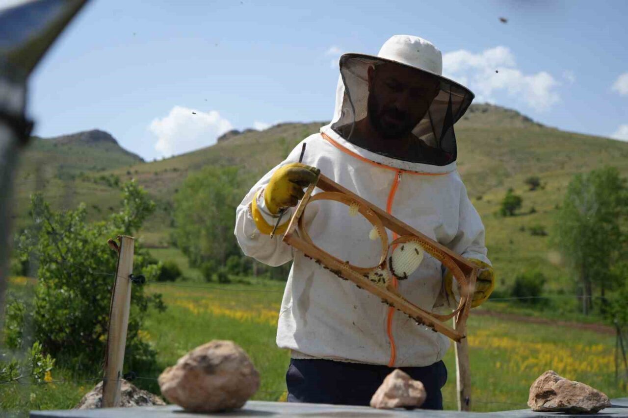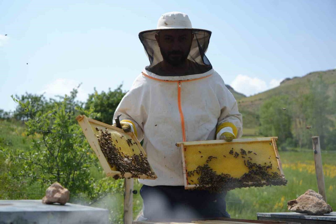 Bayburt’un Kurban Pınar(Hopur) köyünde arıcılık faaliyetleri yürüten arıcı Veysel Karani Yerlikaya, bu sene verimli bir yıl geçireceklerini belirterek, balda rekoltenin yüksek olacağını kaydetti. Yaylanın eşsiz doğasında elde edilen balın kilo fiyatı ise bin ila bin 500 lira arasında değişiyor. Hopur Yaylası’nın zengin ve çeşitli çiçek florası, arıcılık için ideal koşullar sunuyor. Deniz seviyesinden bin 850 metre yükseklikteki yaylada arıcılık yapan Yerlikaya, bölgenin temiz havasının ve endemik bitki örtüsünün bala eşsiz bir tat ve aroma kattığını vurguladı. Yerlikaya, “Burası Bayburt’un merkeze bağlı Kurbanpınar köyü, Hopur Yaylası olarak da biliniyor. Buranın rakımı yaklaşık bin 850 metre. Burada arıcılık faaliyetlerimizi devam ettiriyoruz. Bu sene verimli bir sezon geçireceğiz, öyle görünüyor. Allah kısmet ederse, bir aksilik olmazsa bal hasadı iyi olacak inşallah” dedi. Süzme, petek ve dışarıdan herhangi bir besleme yapılmadan, suni bal mumu takılmadan arıların kendi mum salgıları ile yapmış oldukları doğal bir bal türü olan kara kovan balı, yüksek rakımlı yaylada üretilerek, vatandaşa ulaştırılıyor.