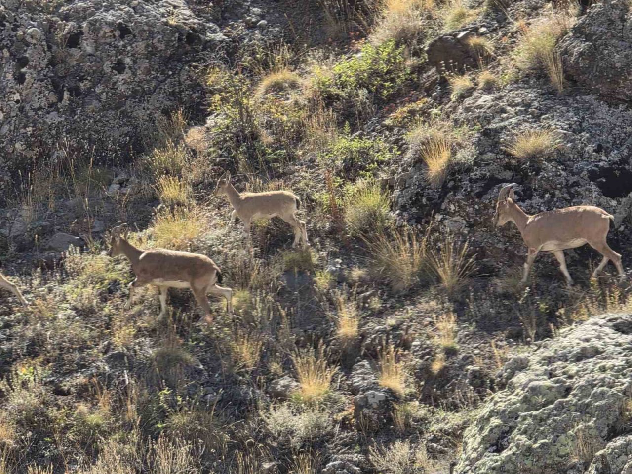Nesli tükenme tehlikesi altında bulunan, halk arasında yaban keçisi olarak adlandırılan dağ keçileri, Bayburt’ta Vauk Dağı civarlarında sürü halinde görüntülendi. Kıvrımlı boynuzları, çevik yapıları, gelişmiş koku alma ve görme duyularıyla dikkat çeken dağ keçileri, cep telefonu kamerasına yansıdı.