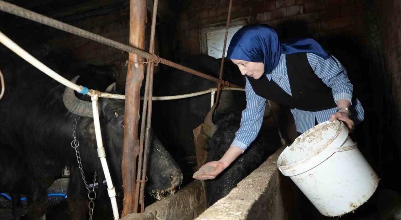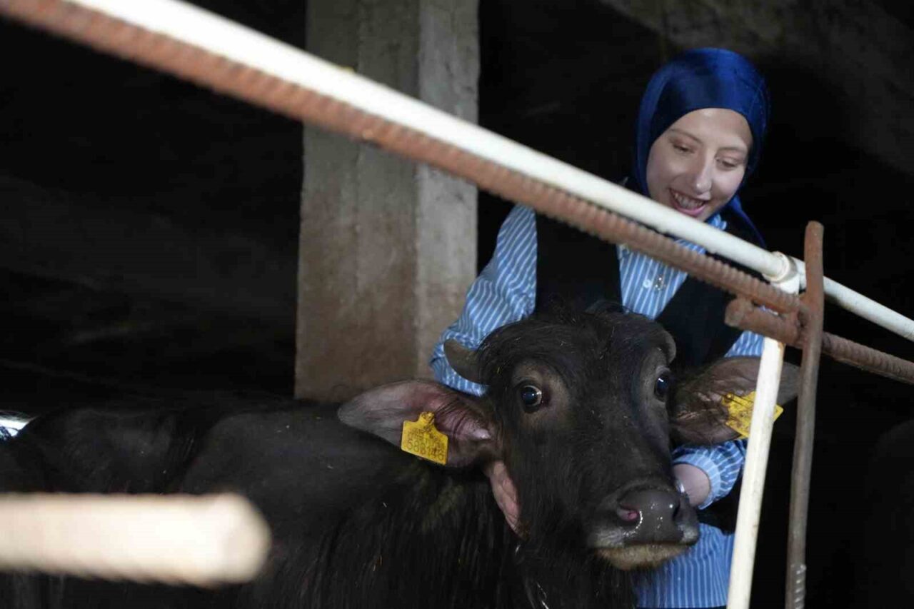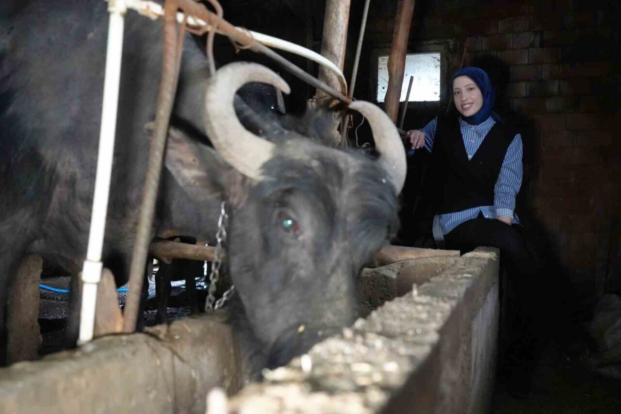 Bayburtlu genç kadın girişimci Şafak Eraslan, devletten aldığı 100 bin liralık hibe desteğiyle manda çiftliği kurarak hem üretime katıldı, hem de ev ekonomisine katkı sağladı.