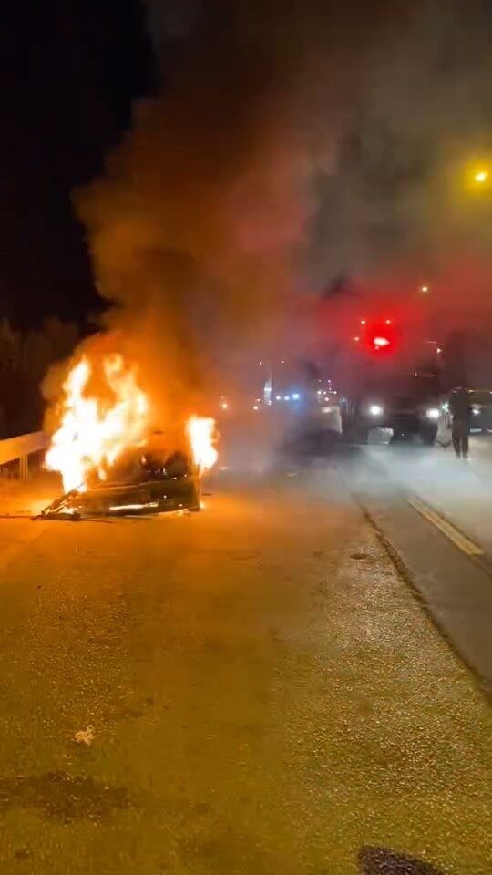 TEM OTOYOLU KÖRFEZ GEÇİŞİNDE BİR OTOMOBİL ALEV ALEV YANDI.