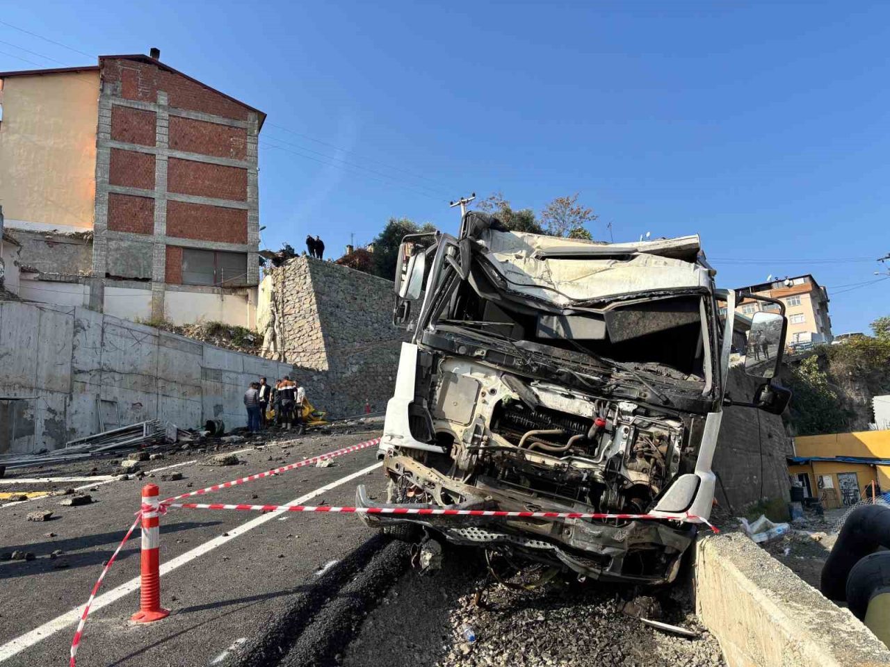 Trabzon’un Ortahisar ilçesinde belediyeye ait bir kamyonet, el freninin boşalması sonucu yokuş aşağı kayarak 3 araca çarptıktan sonra yaklaşık 20 metrelik duvardan yola düştü.