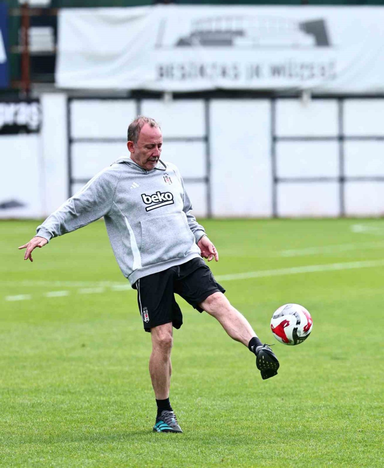 BJK Nevzat Demir Tesisleri’nde, Teknik Direktör Sergen Yalçın yönetimindeki antrenman kondisyon ve taktik çalışmasıydı. Pas çalışması ve 5’e 2 top kapma çalışmasıyla başlayan idman, dar alanda oynanan çift kale maçlarla tamamlandı.