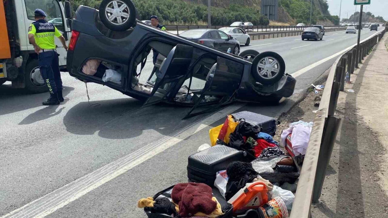 TEM Otoyolu Kocaeli geçişinde kontrolden çıkan hafif ticari araç, bariyerlere çarparak takla attı. Ters duran araçta 3 kişi yaralandı.