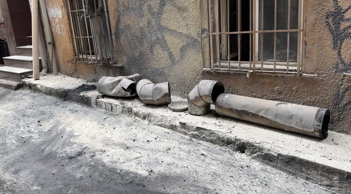 Yangına ilk müdahaleyi yaptığını söyleyen esnaf Tunahan Birben, “Yangın alt kattaki köfteci arkadaşımızın bacasından çıktı. Baca boruları silinmemiş herhalde, o yüzden bacanın içinde tutuşma oldu. O esnada ben de bir üst kattaki dükkanımdaydım. Bir sallantı olmaya başladı ve deprem zannedip aşağıya indim. Arkadaşlar da aşağı inmişti, o esnada bacanın yandığını gördüm. Gittim ve yangın tüpü alıp yangına müdahale etmeye çalıştım. Bacanın birleşim yerlerini yangın büyümesin diye söktüm. Sonrasında yangın tüpüyle çatıya çıkıp, çatıdan bacaya müdahale ettim. İçeride 2 veya 3 kişi vardı zaten, kendi imkanları ile çıktılar. Bu mallar yurt dışına gidecek. Bu vaziyette göndermemin imkanı yok. Yangından dolayı dükkan toz oldu. Malzemelerde hasar yok ama bu vaziyette müşteriye gönderirsem bir daha benden alışveriş yapmazlar. Bizim çalışma ortamımızın tozsuz olması lazım. Yangının bizi en büyük etkileyen kısmı dükkanımın toz içinde kalması” diye konuştu.