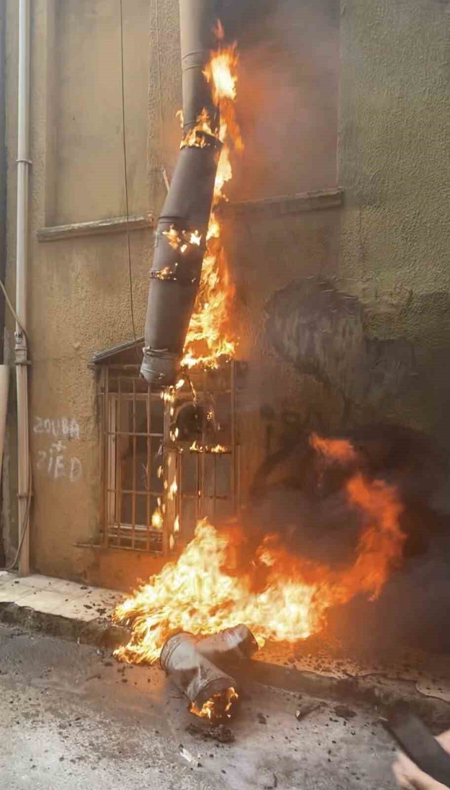 İstanbul Beyoğlu’nda bir iş yerinin bacasında çıkan yangın paniğe neden oldu. Kısa sürede kontrol altına alınan yangında ölen ya da yaralanan olmazken, alevlerin yükseldiği anlar cep telefonu kamerasına yansıdı.