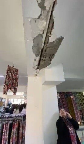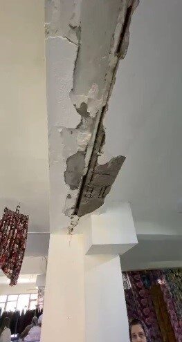 BİGA BELEDİYESİ TİCARET MERKEZİNDE DEPREM SIRASINDA SIVA DÖKÜLMELERİ MEYDANA GELDİ