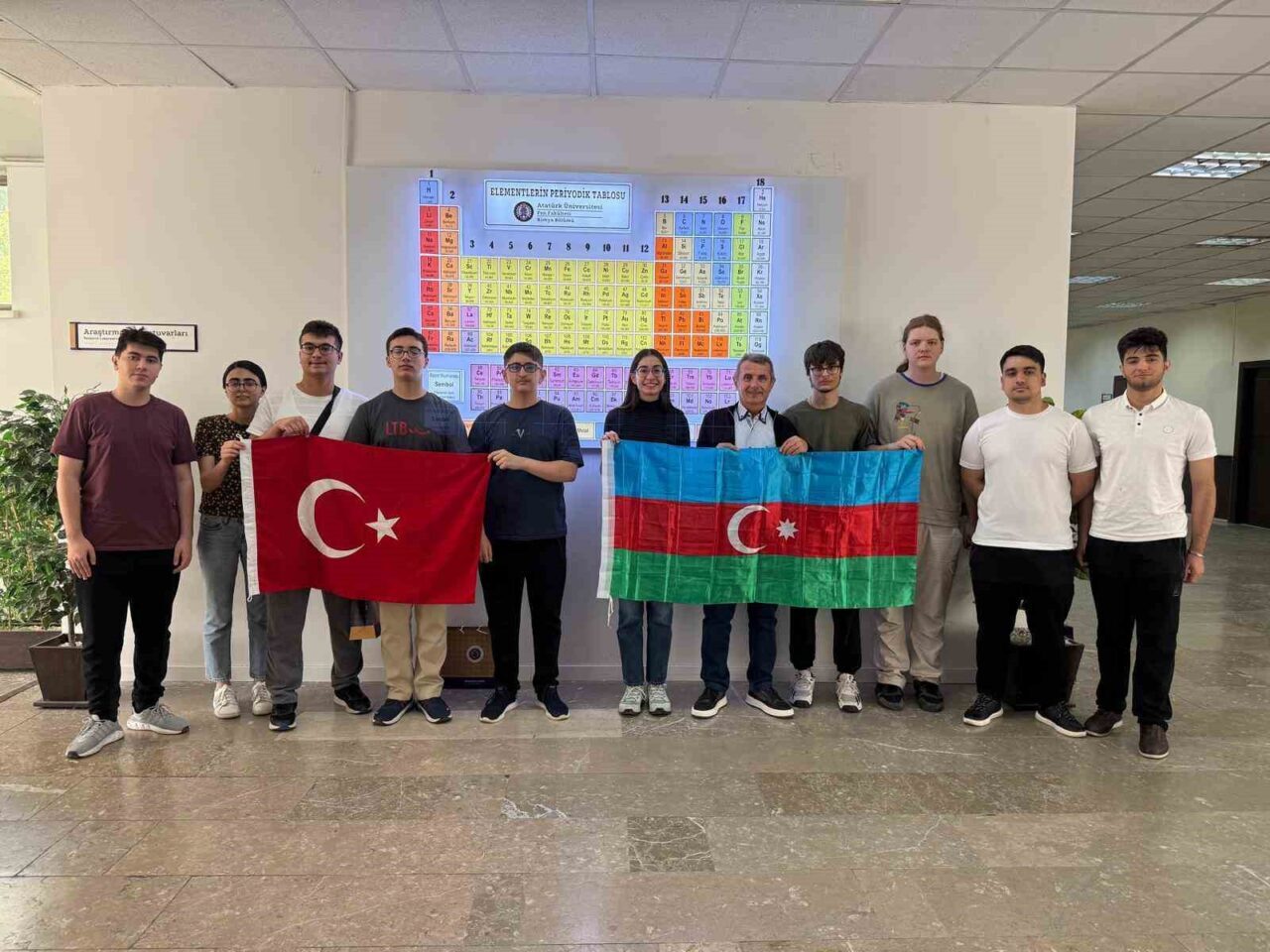 Azerbaycan Kimya Takımı, kamp sürecinde Atatürk Üniversitesi Rektörü Prof. Dr. Ahmet Hacımüftüoğlu’nu makamında ziyaret etti. Ziyarette, Fen Fakültesi Kimya Bölümünden Prof. Dr. Arif Daştan ile DAYTAM Müdürü Doç. Dr. Bilal Nişancı da hazır bulundu.