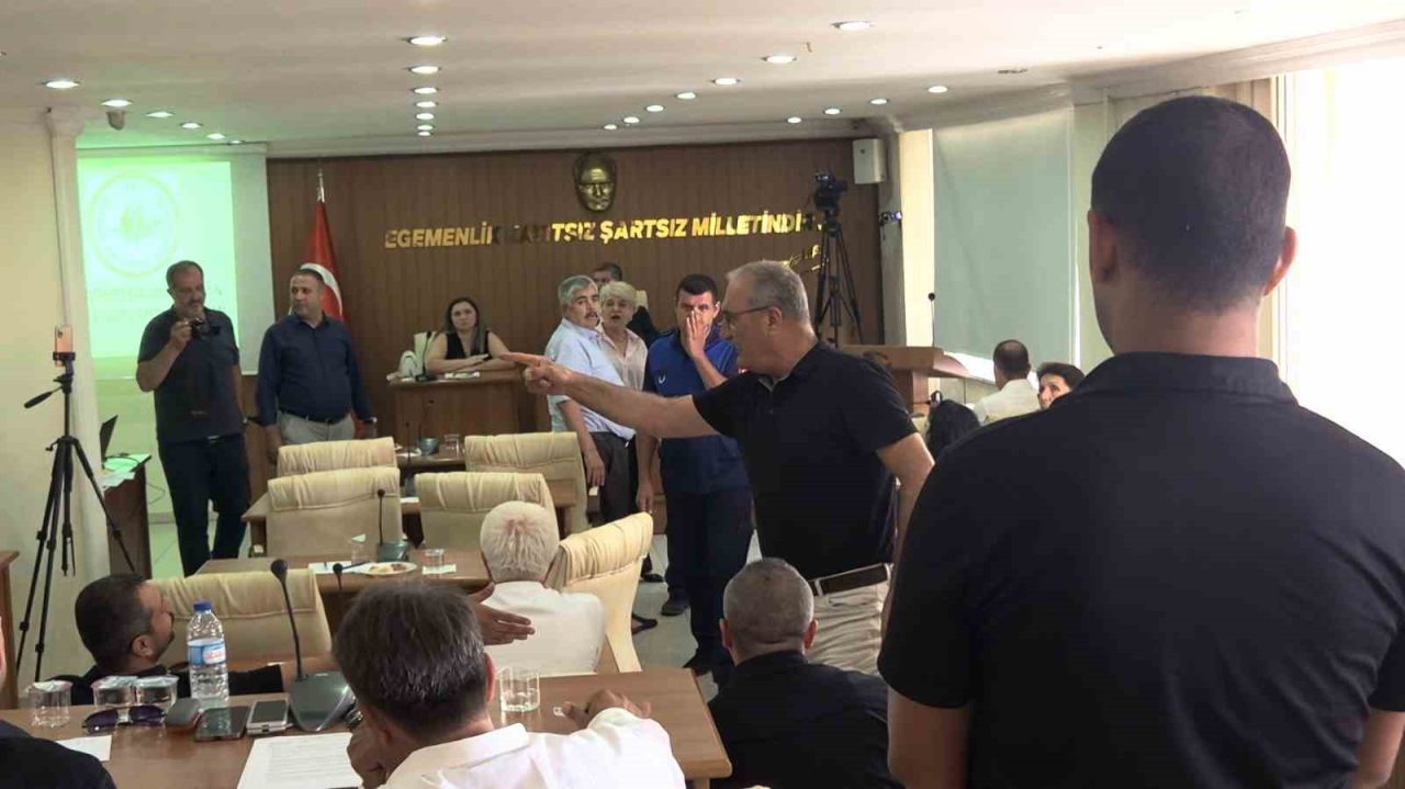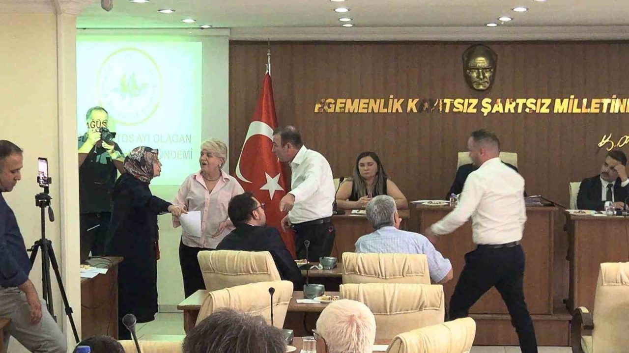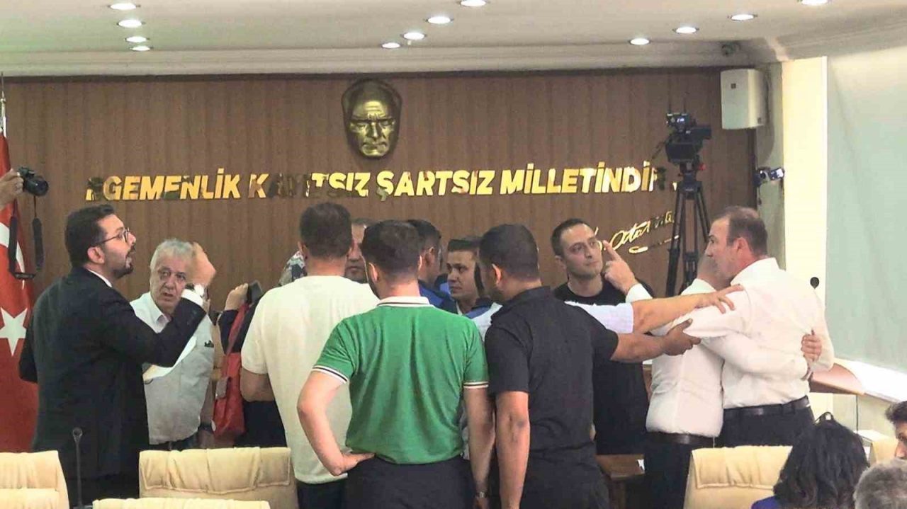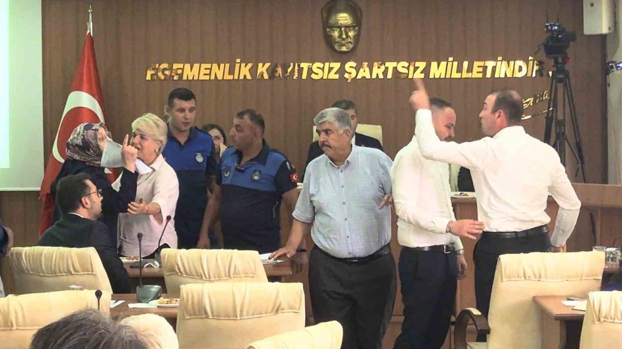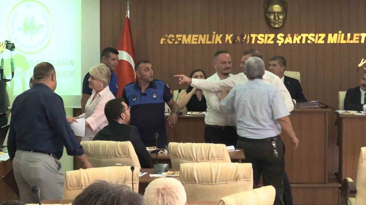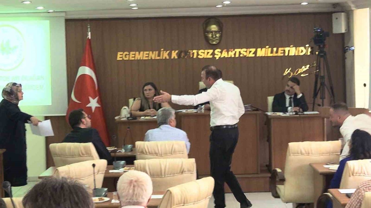 Toplantıda Belediye Başkanı Ali Orkun Ercengiz’in AK Parti İl Başkanı ve meclis üyelerinin paylaşımlarına belediyeyi ilgilendiren konular hakkında cevap vermek istediği esnada AK Partili Meclis Üyesi Fatıma Küçükkaplan’ın bu açıklamanın yerinin burası olmadığını ve açıklamaları dinlemek istemediğini söylemesi üzerine gerginlik yaşandı. Belediye Başkanı Ercengiz meclis üyesini salondan çıkabileceğini söyleyip zabıta memurlarına “Hanımefendiye yardımcı olur musunuz” demesinin ardından Küçükkaplan dışarı çıkmayınca CHP Grup sözcüsü Ali Say ayağa kalkarak AK Partili üyesinin üzerine yürümesiyle gerginlik arttı. Ali Say, bir diğer CHP’li meclis üyesi tarafından kolundan tutularak geri ekilip sakinleştirilmeye çalışılırken, AK Parti’li meclis üyeleri salonu terk etti. Başkan Ercengiz ise toplantıya ara verdi.