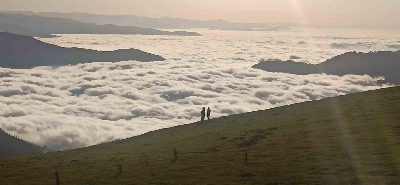 Trabzon’un Hayrat ilçesi sınırları içindeki 2 bin 100 metre yükseklikteki Büyük Harman Yaylası’nda kayda alınan sis denizi görenleri büyülüyor.