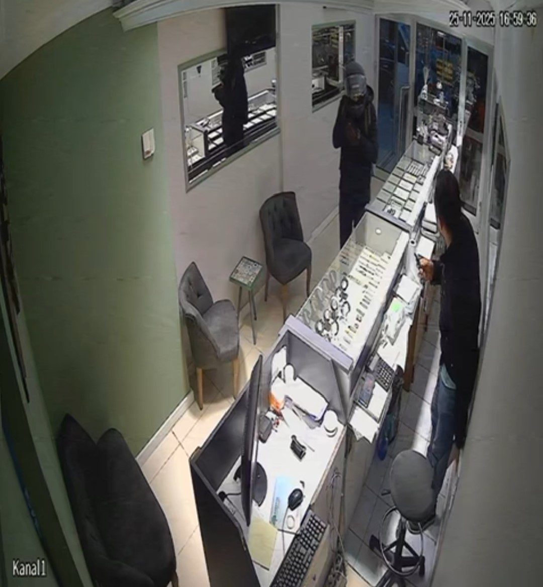 Öte yandan maskeli ve kask bulunan silah soyguncunun kuyumcuya girerek altınları çantaya doldurttuğu ve sonrasında ise çalışanın ayak, el ve ağzını bantlayıp, altınları da alarak olay yerinden kaçtığı anlar güvenlik kamerasına yansımıştı.