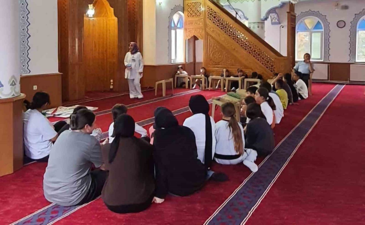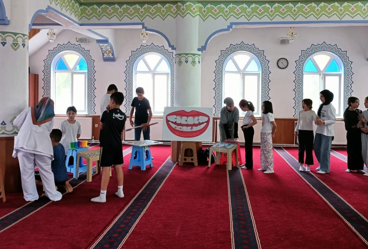 Samsun’un Havza ilçesinde camilerdeki Yaz Kur’an Kurslarına katılan çocuklara ağız ve diş sağlığı eğitimi veriliyor.
