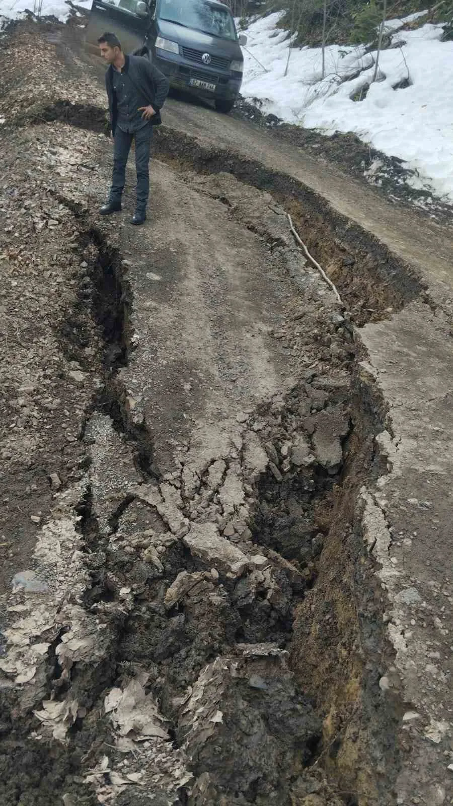 Köy Muhtarı Mustafa Yaman, “Bekirler Mahallesi yolunda çökme 14 Mart’ta başladı. Köprücek Mahallesi girişinde daha önce başlayan heyelan artarak devam ediyor” dedi.