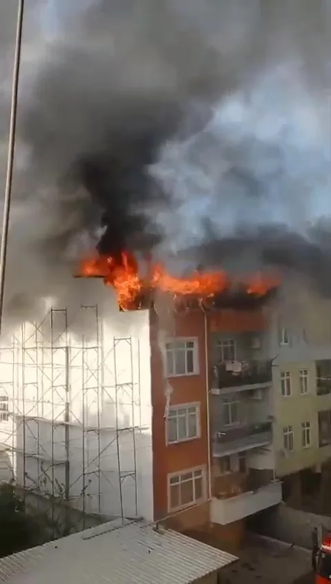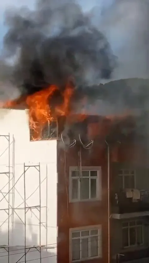 KOCAELİ’NİN KÖRFEZ İLÇESİNDE 5 KATLI BİNANIN ÇATI KATINDA ÇIKAN YANGIN YÜREKLERİ AĞZA GETİRDİ. EV ALEV ALEV YANARKEN YANGIN İTFAİYE EKİPLERİ TARAFINDAN SÖNDÜRÜLDÜ.