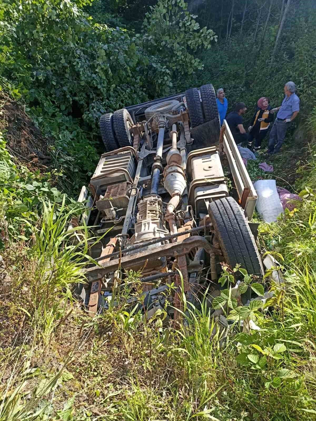 Yaralılarının tedavisinin sürdüğü öğrenilirken, ters dönen kamyonet kepçe yardımıyla düştüğü yerden çıkartıldı.