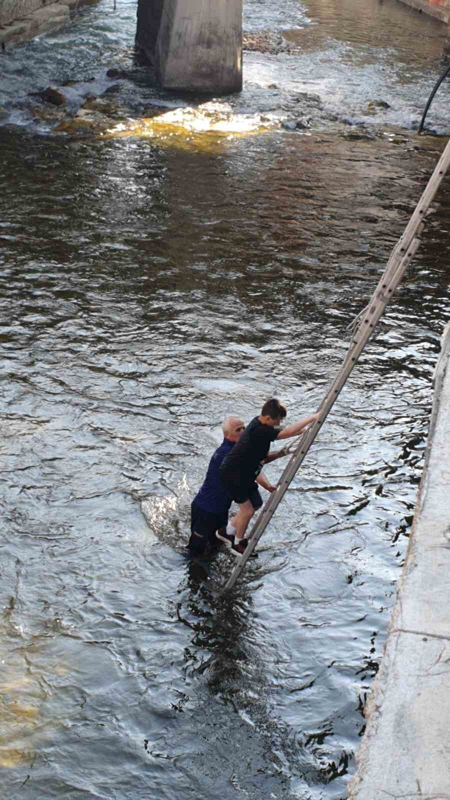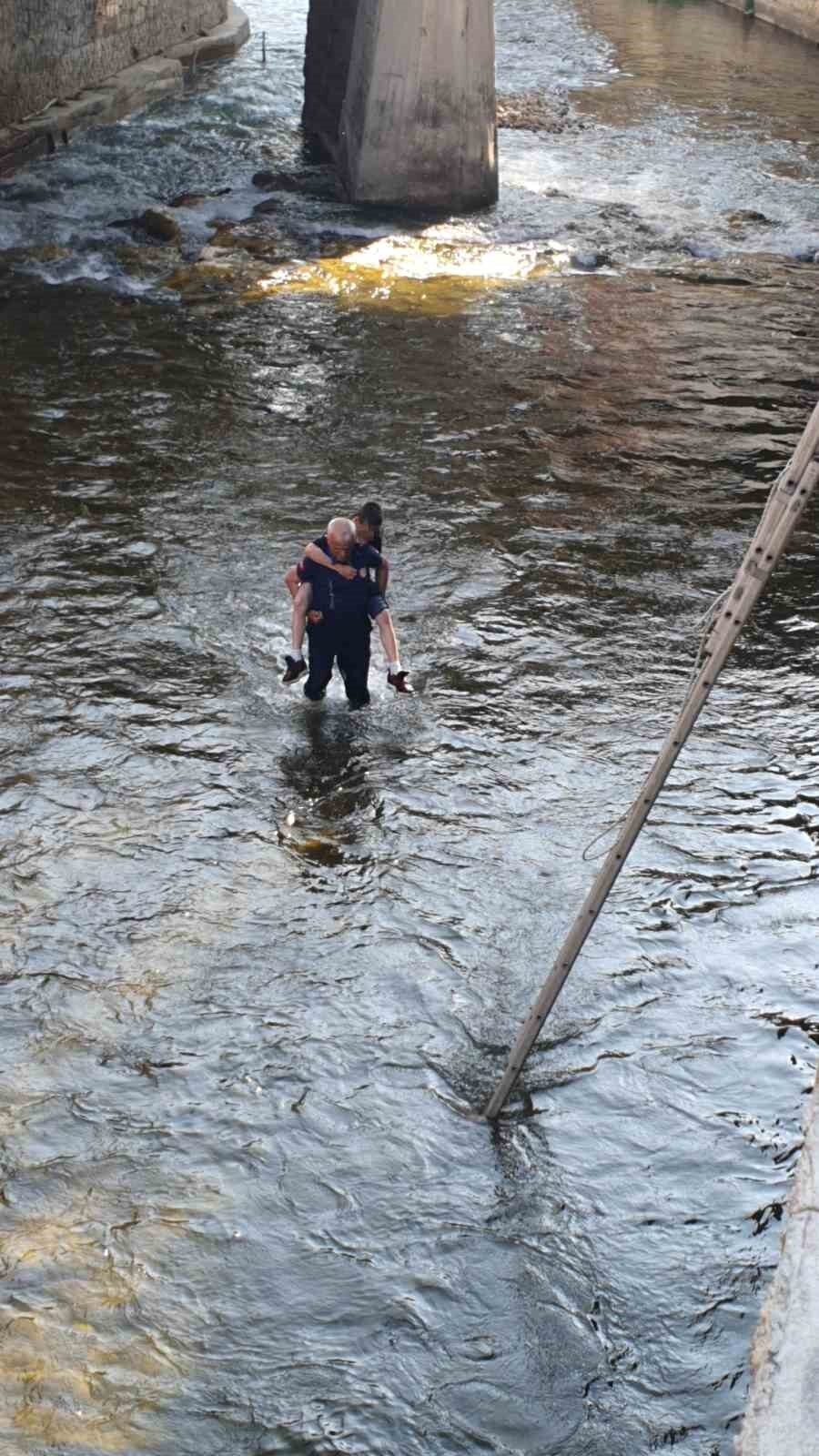 Gümüşhane’de Harşit Çayı’na düşen topunu almak isterken mahsur kalan 13 yaşındaki çocuk, itfaiye ekiplerince kurtarıldı.