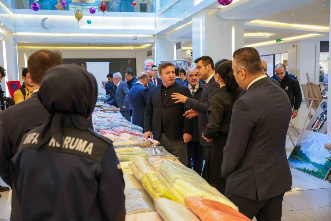 AVM’de ziyarete açılan ve 22-23 Kasım 2025 tarihlerinde vatandaşların beğenisine sunulacak sergide, hükümlü ve tutukluların çeşitli atölyelerde ürettikleri el sanatları, tekstil ürünleri ve dekoratif çalışmalar yer aldı.
