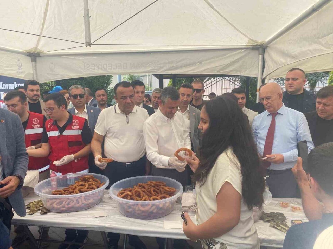 Özel, cuma namazı çıkışında cemaate lokma ve halka tatlısı dağıttı.