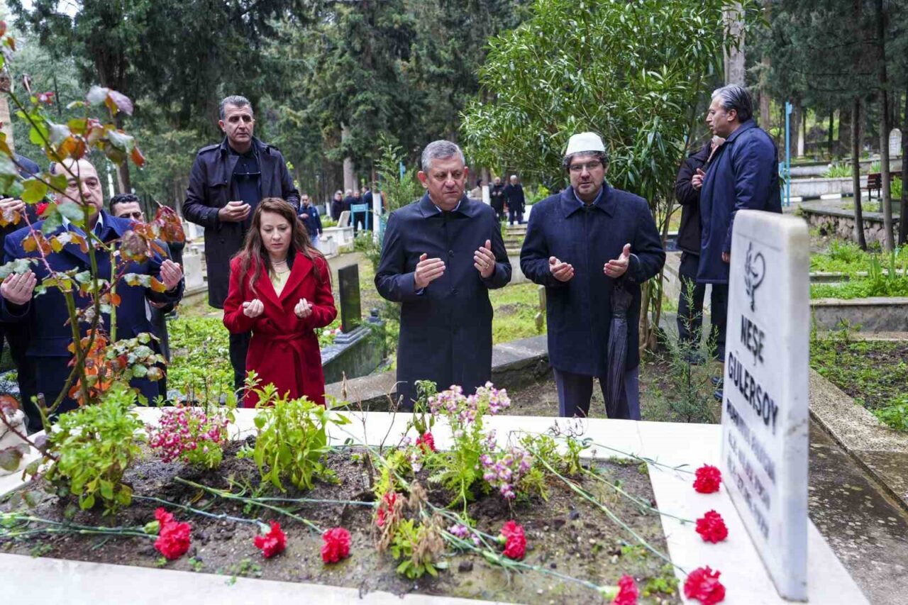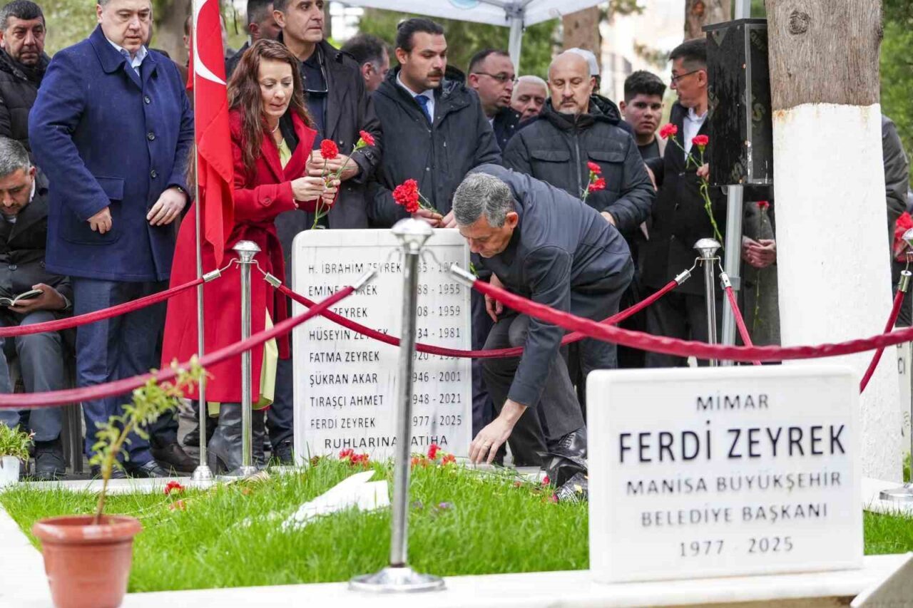 Bayram programı kapsamında asri mezarlığa giden CHP’li Özgür Özel, burada ilk olarak aile büyüklerinin kabirlerini ziyaret ederek dua etti. Özel daha sonra, Manisa Büyükşehir Belediye Başkanı Ferdi Zeyrek, Manisa Tarzanı Ahmet Bedevi, 12 Eylül öncesi öldürülen CHP İl Başkanı eczacı Mete Erdem, MHP İl Başkanı eczacı Cemil Çöllü ve eczacı Neşe Gülersoy’un kabirlerini ziyaret ederek karanfil bıraktı.