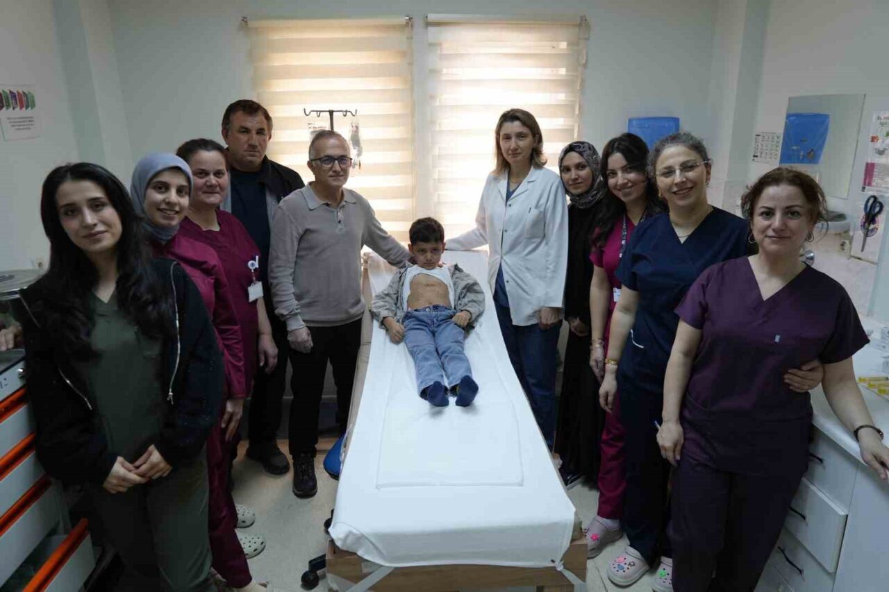 7 yaşındaki Kadir Acar, sık tekrarlayan akciğer enfeksiyonu ve solunum sıkıntısı şikayetiyle Vezirköprü Devlet Hastanesi’ne başvurdu. Çekilen akciğer grafisinde Çocuk Sağlığı ve Hastalıkları Polikliniği’nden Uzm. Dr. Büşra Yılmaz, diyaframda olağan dışı bir görünüm fark ederek hastayı ileri tetkik için Samsun Şehir Hastanesi’ne sevk etti. Burada yapılan incelemelerde doğuştan diyafram fıtığı tanısı netleştirildi. Çocuk Cerrahisi Kliniği hekimlerinden Uzm. Dr. Ahmet Saraç ile Dr. Öğr. Üyesi Serap Samut Bülbül tarafından hastanede ilk kez kapalı yöntemle ameliyat edilen Kadir Acar, sağlığına kavuşturularak taburcu edildi.