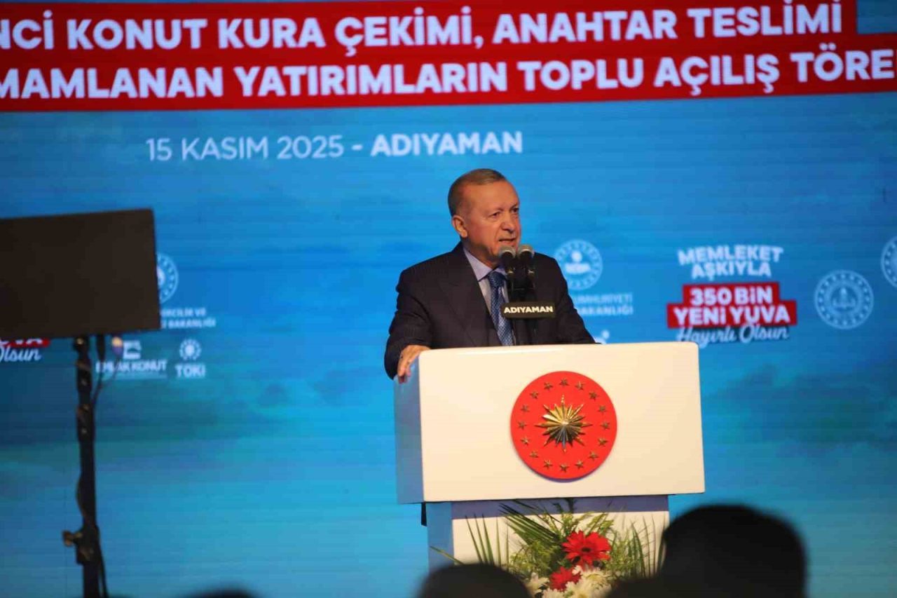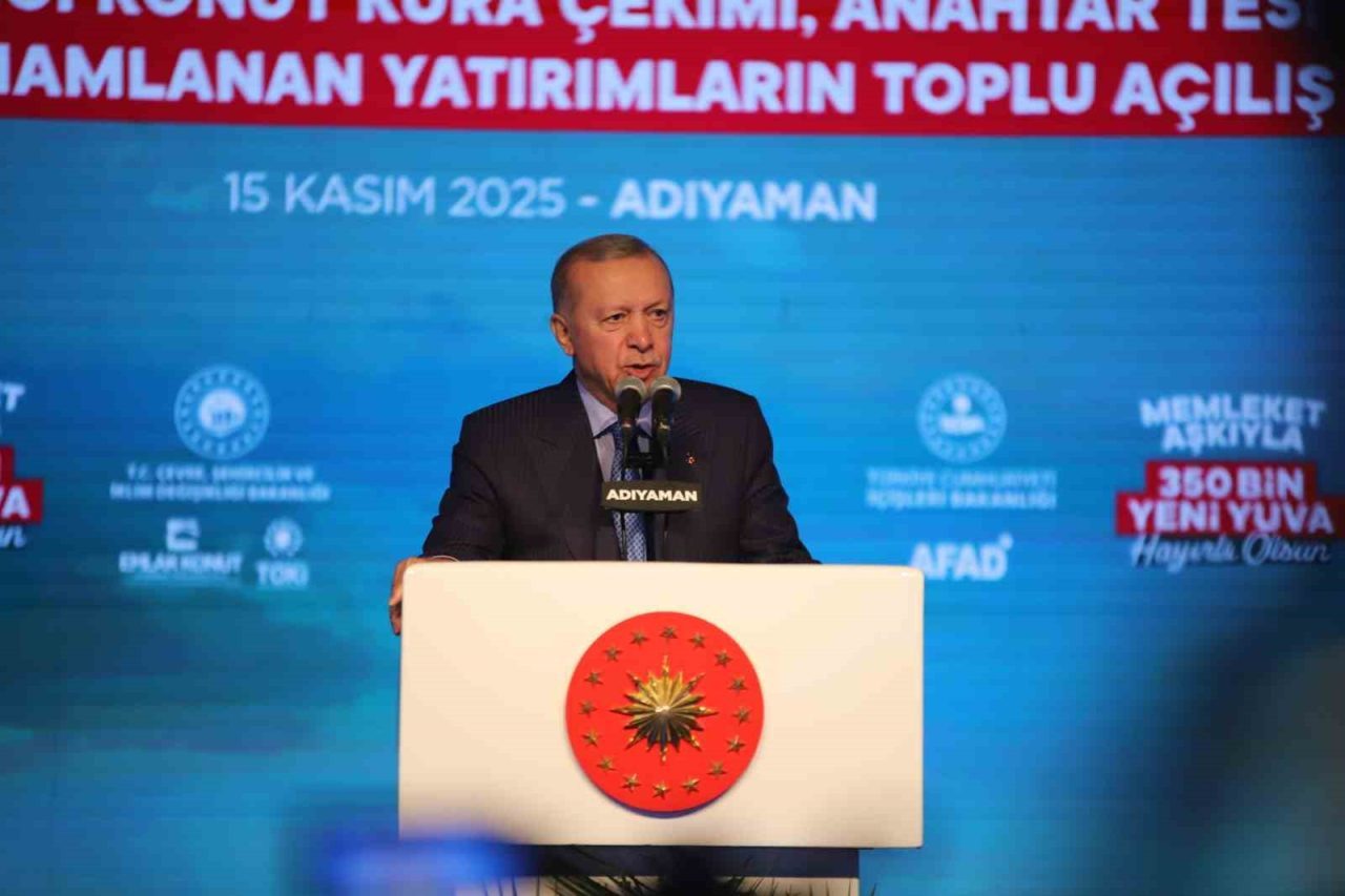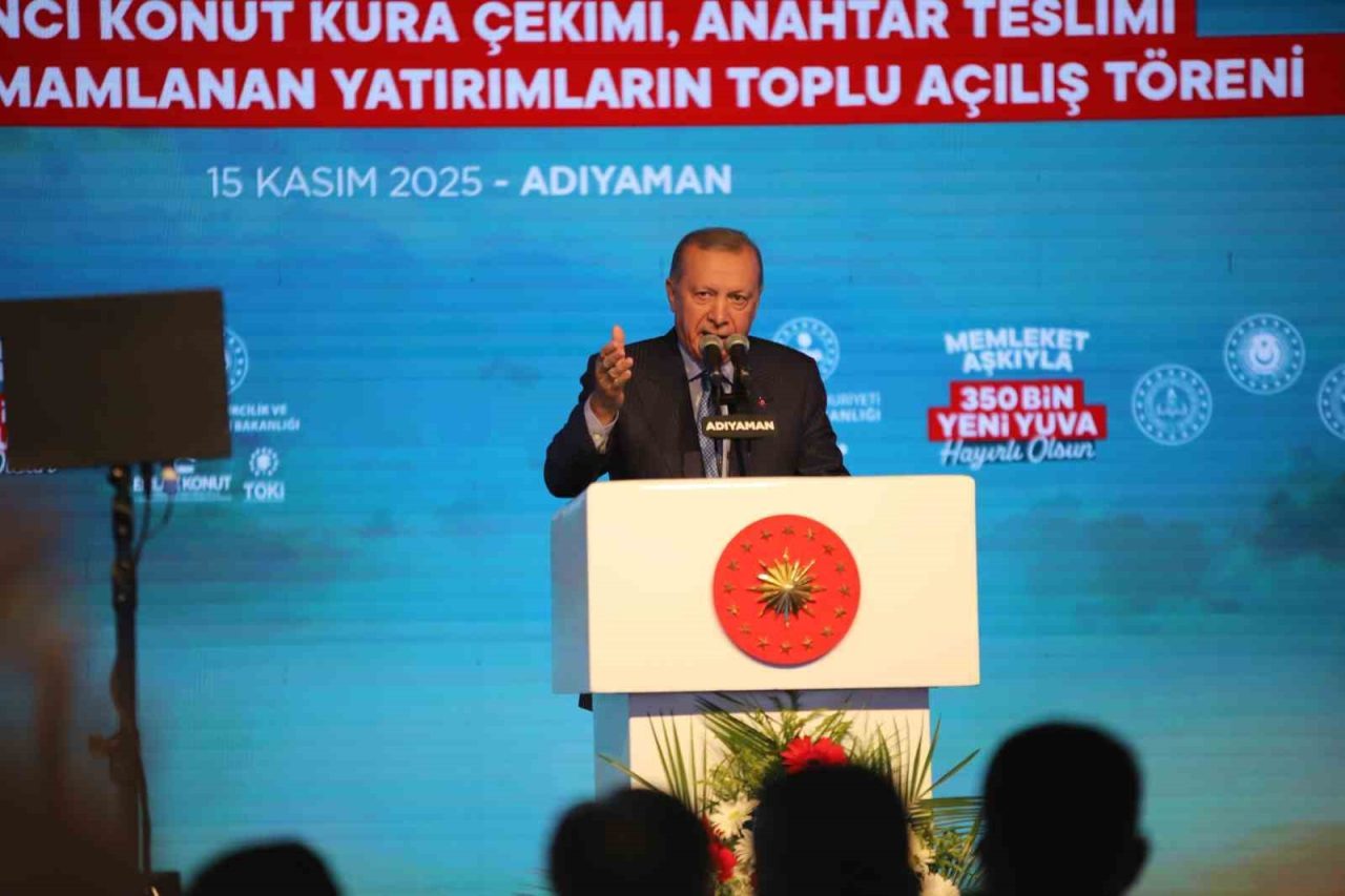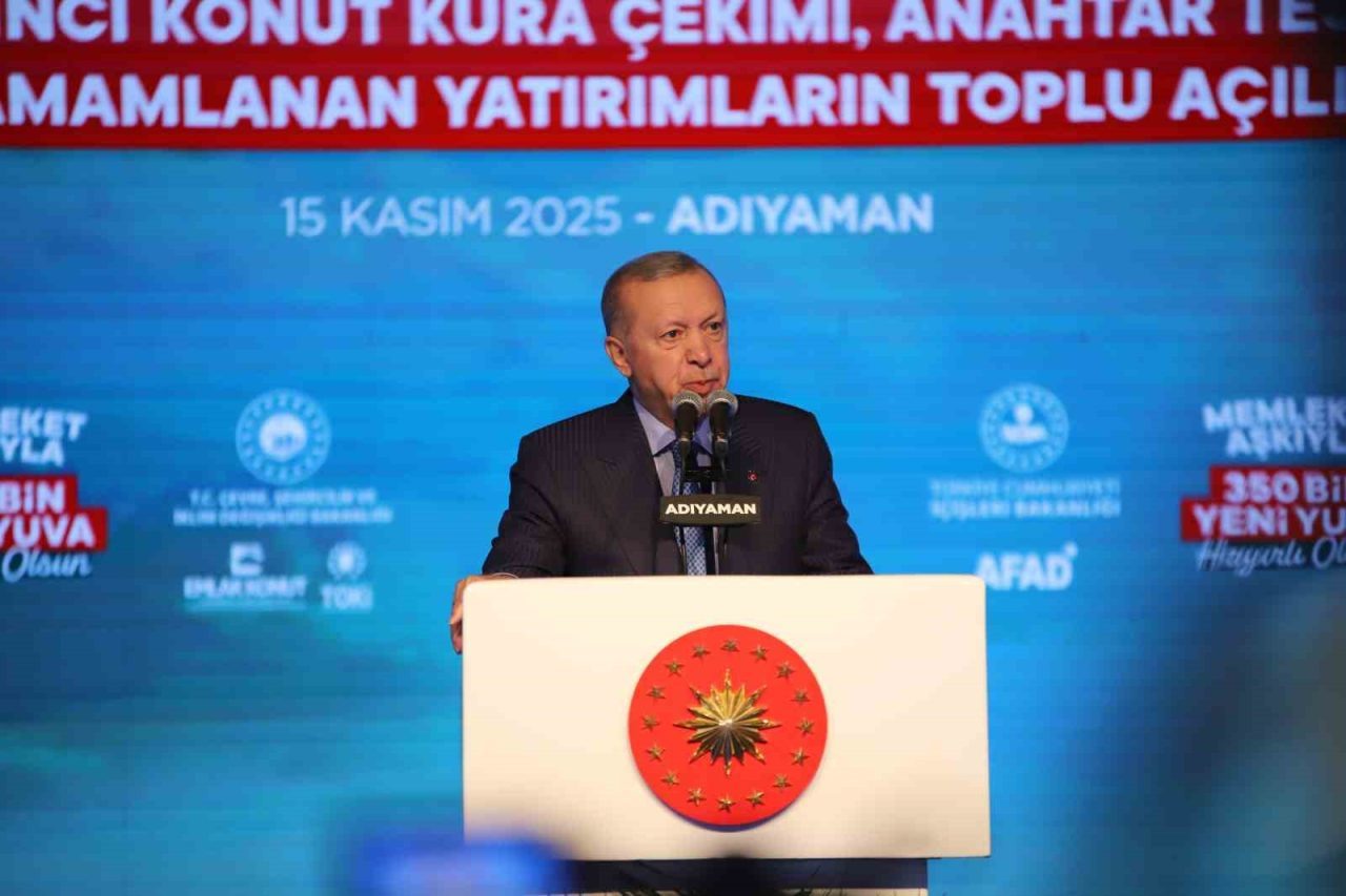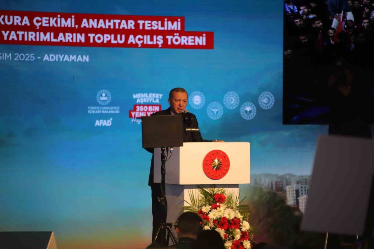 350 BİNİNCİ KONUTUN ANAHTAR TESLİM TÖRENİ İÇİN ADIYAMAN’A GELEN CUMHURBAŞKANI RECEP TAYYİP ERDOĞAN BURADA AÇIKLAMALARDA BULUNDU.