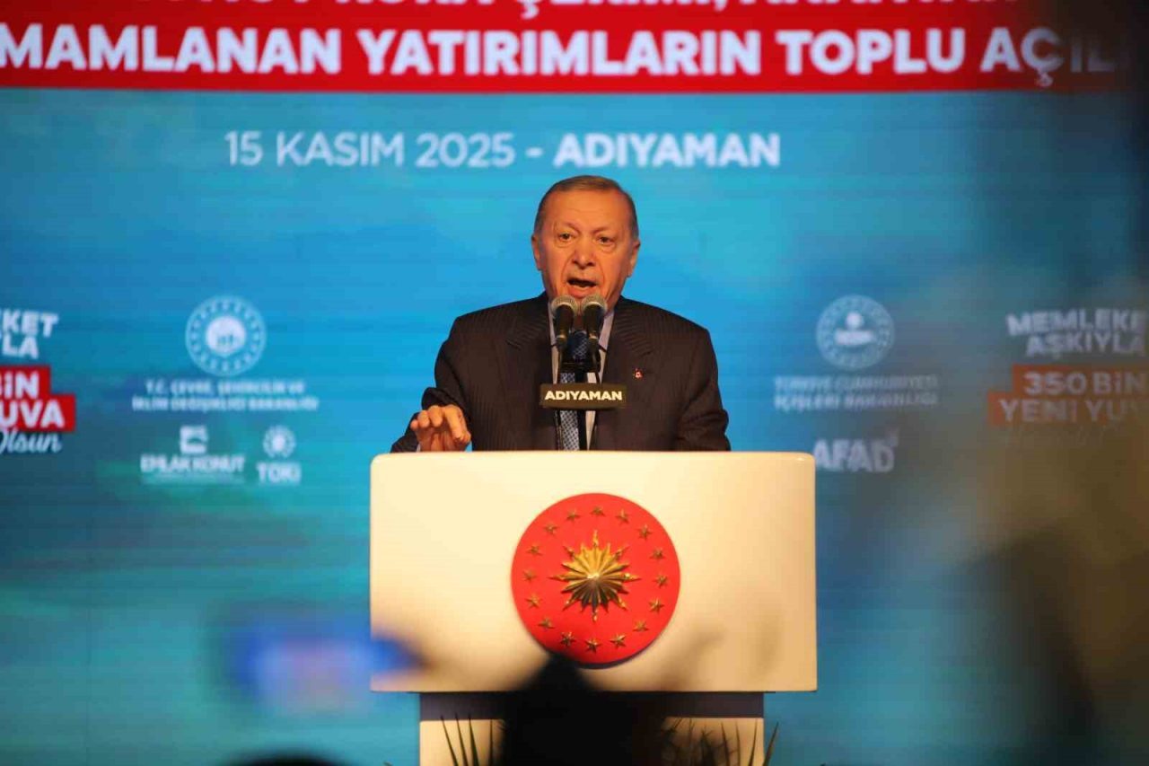 Cumhurbaşkanı Erdoğan, “Biz sadece işimize bakıyoruz. Biz lafla değil, eserle konuşan bir anlayışın sahibiyiz. Ana muhalefetle aramızdaki zihniyet farkını görmek için şu rakamlar bile yeterlidir. Bugün deprem bölgemizdeki 11 ilimizde 174 ayrı alanda 3 bin 481 şantiyede 200 bin mimar, mühendis ve işçi kardeşimiz 7 gün 24 saat esasıyla çalışıyor. Dakikada 3 saatte 23 günde 550 yeni konut yapıyoruz. İnsanımızın hayatına dokunan şehirlerimizin çehresini değiştiren projelerle yol alıyoruz. Geçtiğimiz günlerde 500 bin sosyal konut projemizi ilan ettik. 10 Kasım’da da başvurular başladı. Milletimiz projeye çok yoğun ilgi gösteriyor. Kampanyamız kapsamında Adıyaman’ımıza da 5 bin sosyal konut yapacağız. Merkezde, Besni’de Çelikhan’da Gerger’de Gölbaşı’nda Kahta’da Samsat’ta Tut’ta yerlerimizi belirledik. Başvurular bittikten sonra temelleri atacak evlerimizi hızla teslim edeceğiz. Evlerinin anahtarlarını almaya hak kazanan vatandaşlarımızı tebrik ediyorum. Bu eserlerimizin yapımında emeği geçen herkese teşekkür ediyorum” diye konuştu.