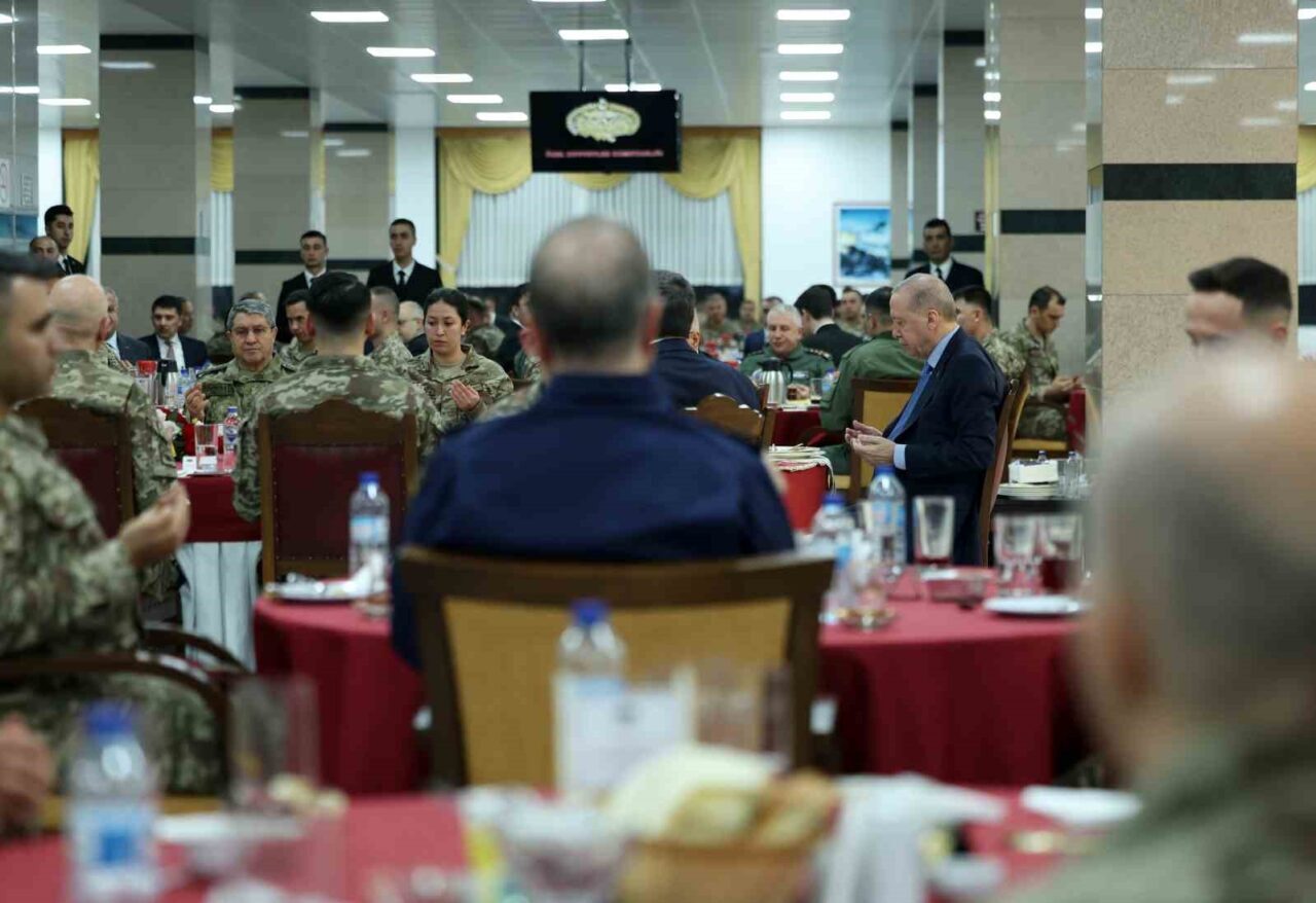 Cumhurbaşkanı Recep Tayyip Erdoğan, Özel Kuvvetler Komutanlığında düzenlenen Mehmetçik ile İftar Programı’na katıldı. Türkiye’nin dört bir köşesinde görev yapan askerlere üstün başarılar dileyen Cumhurbaşkanı Erdoğan, “Rabbim askeri, polisi, jandarması, güvenlik korucusu ve istihbaratçısıyla tüm güvenlik güçlerimizin yardımcısı olsun. Onları her türlü kazadan, beladan, saldırıdan, ihanetten korusun ordumuzu daima muzaffer eylesin. Elbette bu mübarek akşamda vatanı için, milleti için, bayrağı için toprağa düşmüş tüm şehitlerimizi rahmetle yad ediyor ruhları şad, menzilleri mübarek, mekanları inşallah cennet olsun diyorum” diye konuştu.