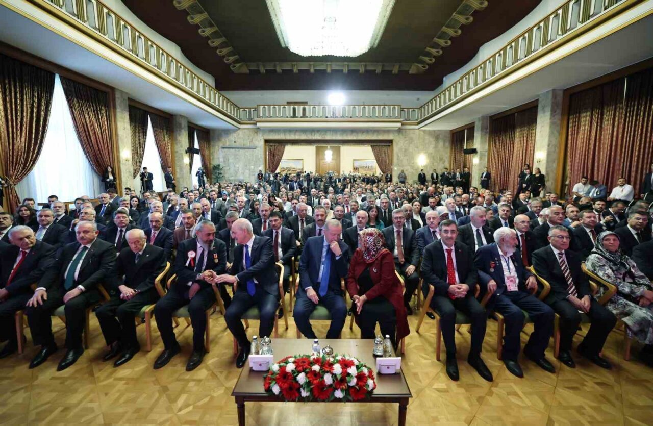 Cumhurbaşkanı Recep Tayyip Erdoğan, Türkiye Büyük Millet Meclisi’nde( TBMM) gerçekleşen 15 Temmuz Demokrasi ve Millî Birlik Günü Anma Programında konuştu. Erdoğan ,”Ateşten gömlek giydiğimiz bu imtihan gecesinde olduğu gibi yine güçlü bir şekilde omuz omuza vermiş birbirimize sıkıca kenetlenmiş durumdayız. Az önce seyrettiğimiz videoda o geceyi bir kez daha hatırladık. Acıyla, hüzünle, öfkeyle birlikte dayanışmayı, cesareti ve direnişi de tekrar gözlerimizin önünden geçirdik. İstiklal ve istikbalimize sahip çıkan, bu uğurda canlarını feda eden aziz şehitlerimizin ruhları için Fatiha-i Şerifelerimizi okuduk.