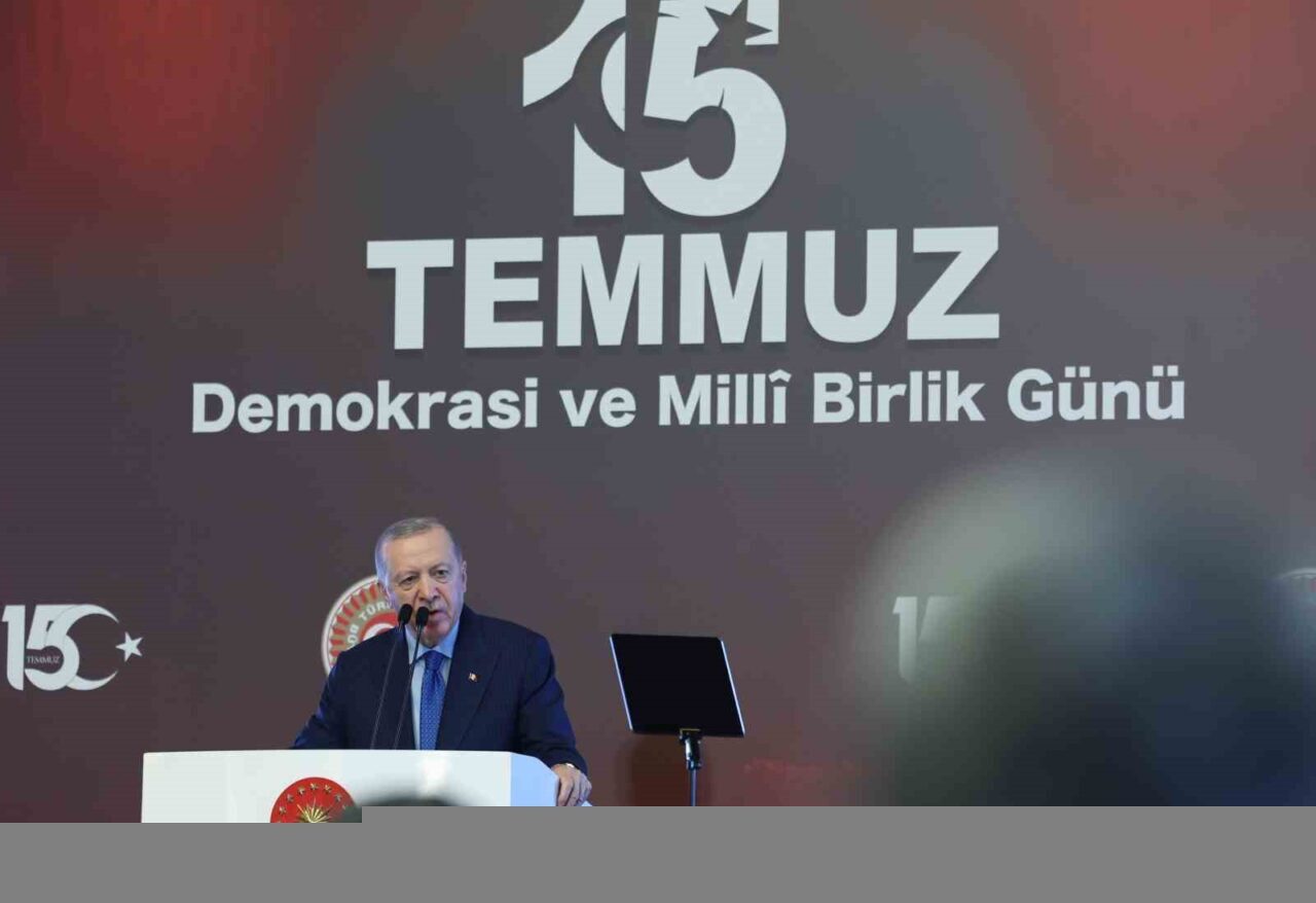 15 Temmuz’da milletin omuz omuza verdiğini kaydeden Erdoğan, “Şurası bir gerçek ki asırlardır şehit kanlarıyla sulanan bu topraklar tarihe yön veren destanların yazıldığı topraklardır. Zengin birikimiyle, müstesna seciyesiyle, taşıdığı güçlü imanla bu millet tam bin yıldır mazlumlara umut, düşmanlara korku ören bir millettir. İşte o millet Çanakkale ve milli mücadeleden sonra 15 Temmuz gecesi canıyla, kanıyla, bütün varlığıyla kıyamete kadar iftiharla alınacak şanlı bir destan yazmıştır. Bu destan çıplak ellerin tanklara, uçaklara, bombalara karşı zaferidir” diye konuştu.
