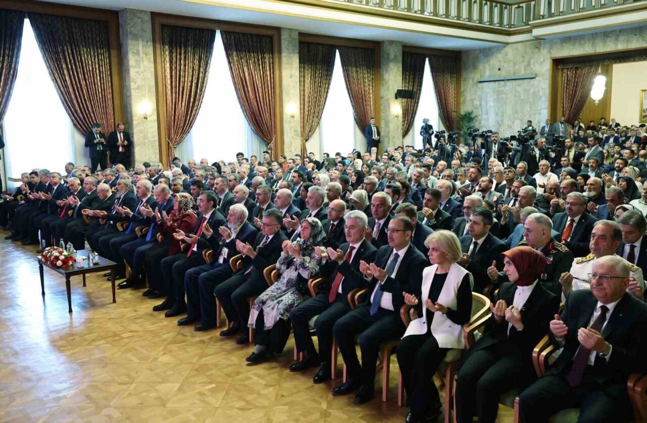 Cumhurbaşkanı Recep Tayyip Erdoğan, ” Terörsüz Türkiye terörsüz bölgeye giden sürecin kilidini açacak. Türkiye yüzyılının inşası daha da hızlanacak. Çok kutuplu dünyada Türkiye’miz yeni bir kutup başı olarak inşallah hak ettiği yeri alacaktır” dedi.