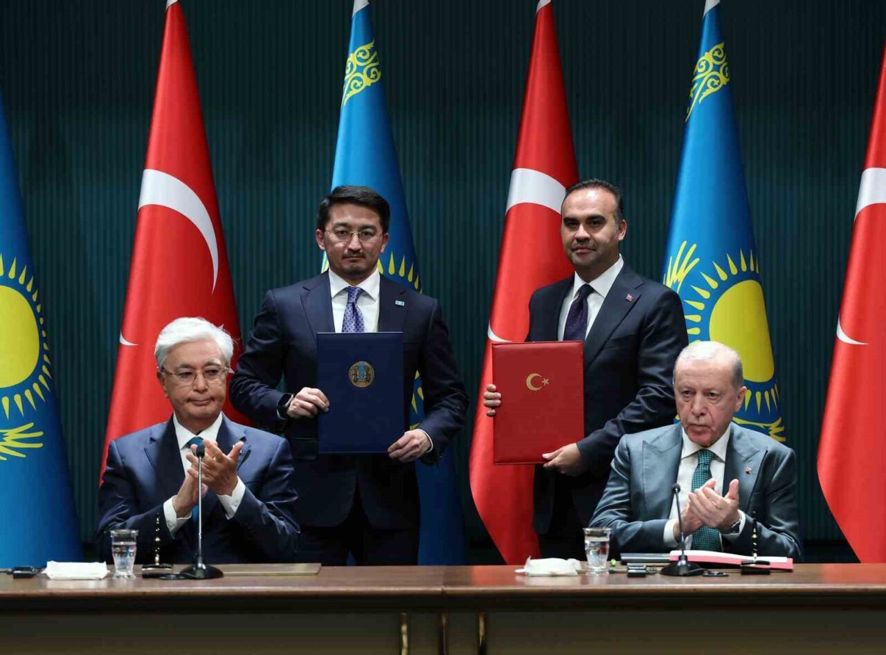 Ticaret hacminde 15 milyar dolar seviyesini hedeflediklerini belirten Cumhurbaşkanı Erdoğan, “Yatırımlarımız 5 milyar dolar seviyesine ulaştı. Kazakistan’ın ülkemizdeki yatırımları ise 1,5 milyar dolara yaklaştı. Müteahhitlik firmalarımız bugüne kadar 30 milyar dolar değerinde 500’ün üzerinde projeyi başarıyla üstlendi. Bugün de savunmadan enerjiye, ulaştırmadan bilim ve teknolojiye çok geniş bir yelpazede görüş alışverişimiz oldu. Neticede biraz önce şahit olduğunuz çok sayıda belge üzerindeki 20 belgeyi imzaladık. Madencilik ve nadir toprak elementleri gibi bu sektörlerde işbirliği imkanlarını değerlendirdik” diye konuştu.