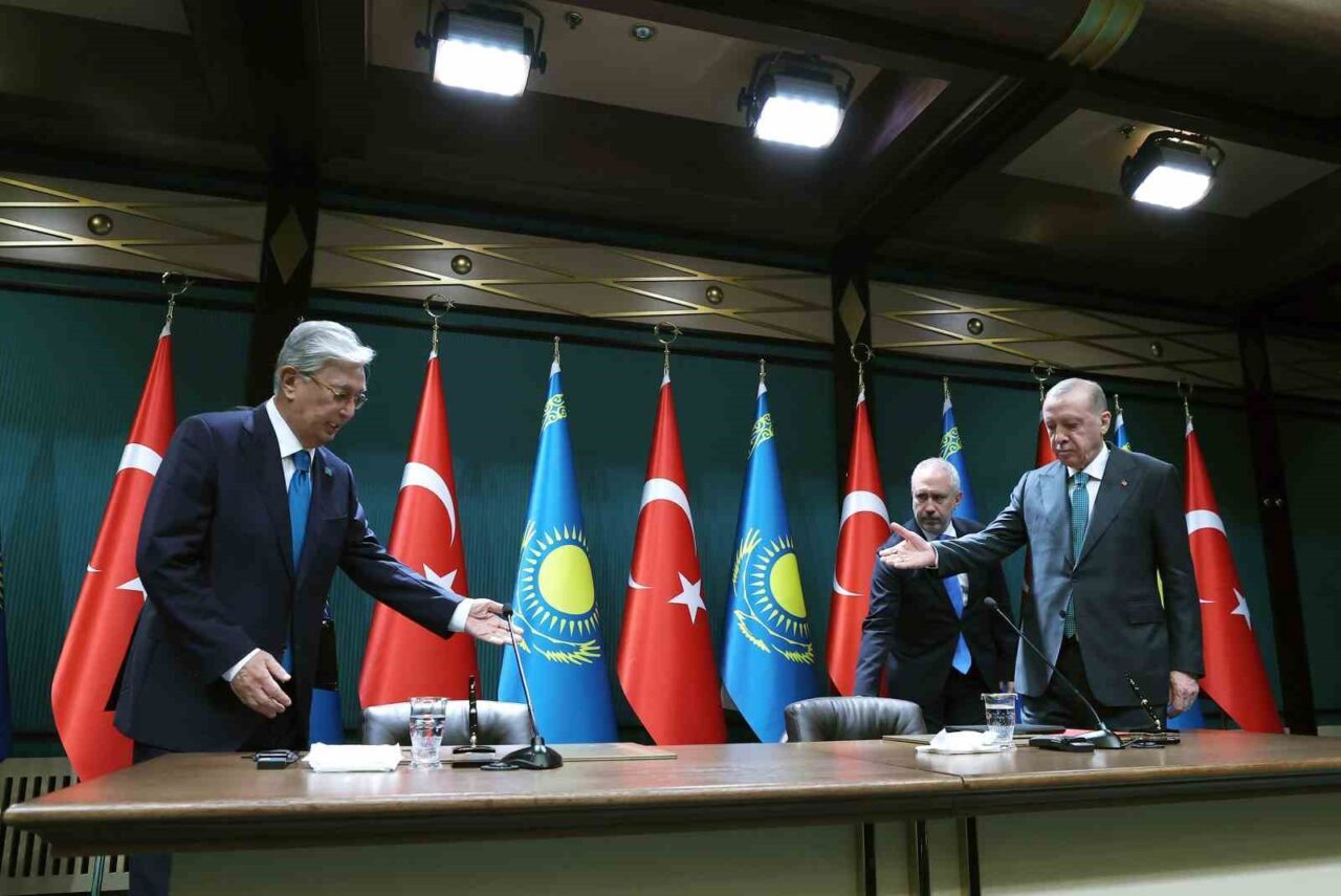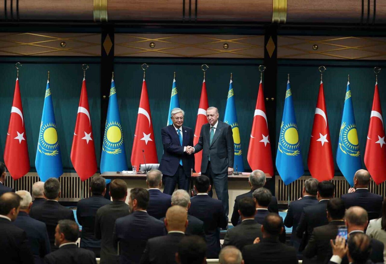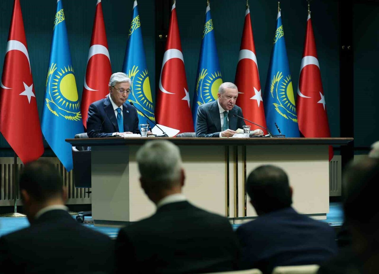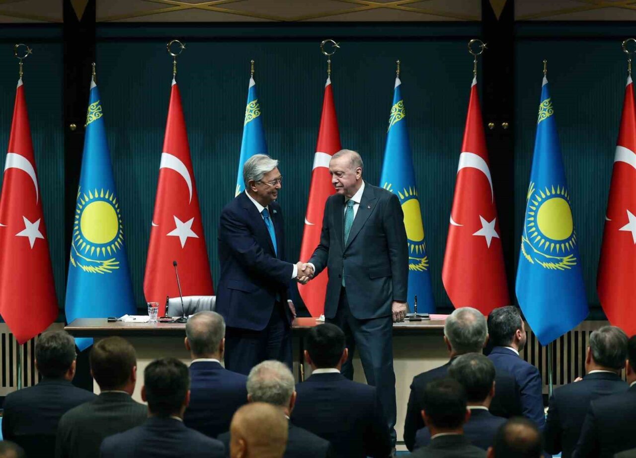 Bu sene Kazakistan’ın milli şairi, Kazak halkının büyük dahisi, mütefekkir Abay Kunanbayev’in 180. doğum yıldönümü olduğunu belirten Cumhurbaşkanı Erdoğan, “İsmini Kazak kardeşlerimizle birlikte tüm Türk dünyasının kalbine derin saygıyla yazdıran o büyük şairi bu vesileyle rahmetle yad ediyorum. Doğu Akdeniz’den Türkistan’ın en ucu köşelerine uzanan coğrafyamızda, dilde, fikirde, işte birlik şiarıyla hareket ediyoruz. Gerek ikili ilişkiler, gerek aile meclisimiz olan Türk Devletleri Teşkilatı bünyesinde Türk dünyasının güçlenmesi için birlikte çalışıyoruz. Kazakistan’ın teşkilatımızın 2026’daki gayri resmin zirvesine, Türkistan’da ev sahipliği yapacak olmasından memnuniyet duyduk. Türk dünyasının asli ve ayrılmaz bir unsuru olan Kıbrıs Türkleriyle de dayanışmamızı güçlendirmeye devam ediyoruz. Biraz önce Sayın Tokayev ile kabul ettiğimiz ortak bildiride, Kıbrıs Türklerinin eşit ve özden gelen haklarına saygı duyulmasını özellikle istişare ettik” diye konuştu.