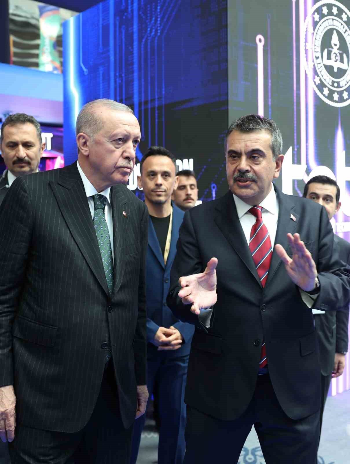 Yapay zekanın eğitimde büyük fırsatlar sunacağının ve önemli paradigma değişimlerine yol açacağının farkında olduklarını vurgulayan Cumhurbaşkanı Erdoğan, “Çalışmalarımızı bu gerçeği dikkate alarak çok yönlü bir şekilde sürdürüyoruz. Eğitimde yapay zeka politika belgesini hazırlayarak geçen hafta kamuoyumuzla ve eğitim camiamızla paylaştık. Ortaokul ve lise müfredatına entegre ettiğimiz seçmeli yapay zeka derslerimizle teknoloji üreten, çözüm geliştiren ve sorgulayan genç bireyler yetiştirmeyi hedefliyoruz. Feyza ve Hisar projeleriyle üniversiteye hazırlık, mesleki gelişim ve çok dilli öğrenme gibi alanlarda yapay zeka destekli çözümler üretiyoruz. Öğretmenlerimizin günlük öğretim faaliyetlerinde kullanabileceği yapay zeka destekli yardımcı asistan uygulamamızın çalışmalarına başladık. Eğitim teknolojileri ekosistemimizi her geçen gün büyütüyor, güçlendiriyoruz. 1280 firmayı kapsayan eğitim teknolojileri sektörümüz ile bakanlığımız arasında yeni işbirlikleri geliştiriyoruz. Bu projelerle önümüzdeki 5 yıl içinde yüzü aşkın yeni girişimciye önemli destekler sunacağız. Bakanlığımız ve TÜBİTAK arasında yapılacak iş birliğiyle yüzün üzerinde yerli girişimi küresel düzeyde rekabet edebilecek seviyeye taşıyacağız. Bölgemizdeki son hadiseler bize veri güvenliğinin önemini tekrar hatırlattı. Yabancı menşeli mesajlaşma uygulamalarının yol açtığı güvenlik zafiyetlerini gazetelerde okuyoruz” ifadelerini kullandı.