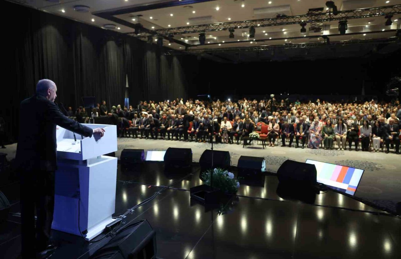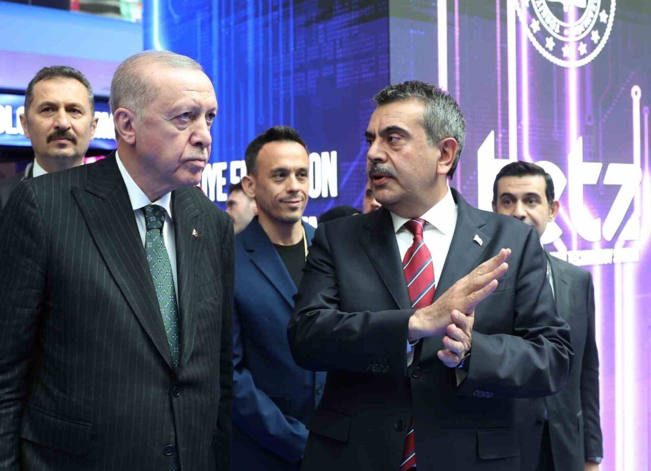 Şehit öğretmenleri andıktan sonra cumartesi ve pazar günü YKS sınavına girecek tüm öğrencilere başarılar dileyerek konuşmasına başlayan Cumhurbaşkanı Erdoğan, “Teknolojinin hayatın her alanına hem de derinlemesine nüfuz ettiği bir dönemi hep birlikte yaşıyoruz. Dijital teknolojiler, büyük veri, yapay zeka ve kuantum bileşimi gibi nice yenilik, bugünün dünyasında ekonomiden ulaşıma, savunmadan diplomasiye, tarımdan ticarete, her sahada güçlü bir varlık gösteriyor. Bilgiye erişim, geçmişte hiç olmadığı kadar kolaylaşırken, bilgiyi işleme, analiz etme ve kullanma süreçleri de aynı ölçüde hızlanmış durumda. Türkiye olarak bu baş döndürücü değişime en hızlı uyum sağlayan, hatta çoğu alanda öncülük eden ülkelerden biriyiz. Gerekse savunma sanayinde son 23 yılda elde ettiğimiz tarihi başarılar, gerekse eğitim teknolojilerinde yaptığımız devrim niteliğindeki hamleler, bu hakikatin en güçlü göstergelerini teşkil ediyor. Burada şu hususun altını özellikle çizmek arzusundayım. Bir ülke için eğitim, yalnızca fiziki şartları ve teknolojik boyutuyla değil, fikri altyapısıyla da en hayati sahalardan biridir. Müfredatından eğitimci kadrosuna, imkan ve kabiliyetleri itibariyle çağa ayak uyduramayan eğitim sistemleri başarısız olmaya mahkumdur. Kökleri ve tarihiyle bağlarını koparmış, ilmi ve fikri müktesebatına sırt çevirmiş, istikbalini yabancı ideolojilerin insafına bırakmış bir eğitim anlayışının sonu ise elbette ki hüsrandır” dedi.