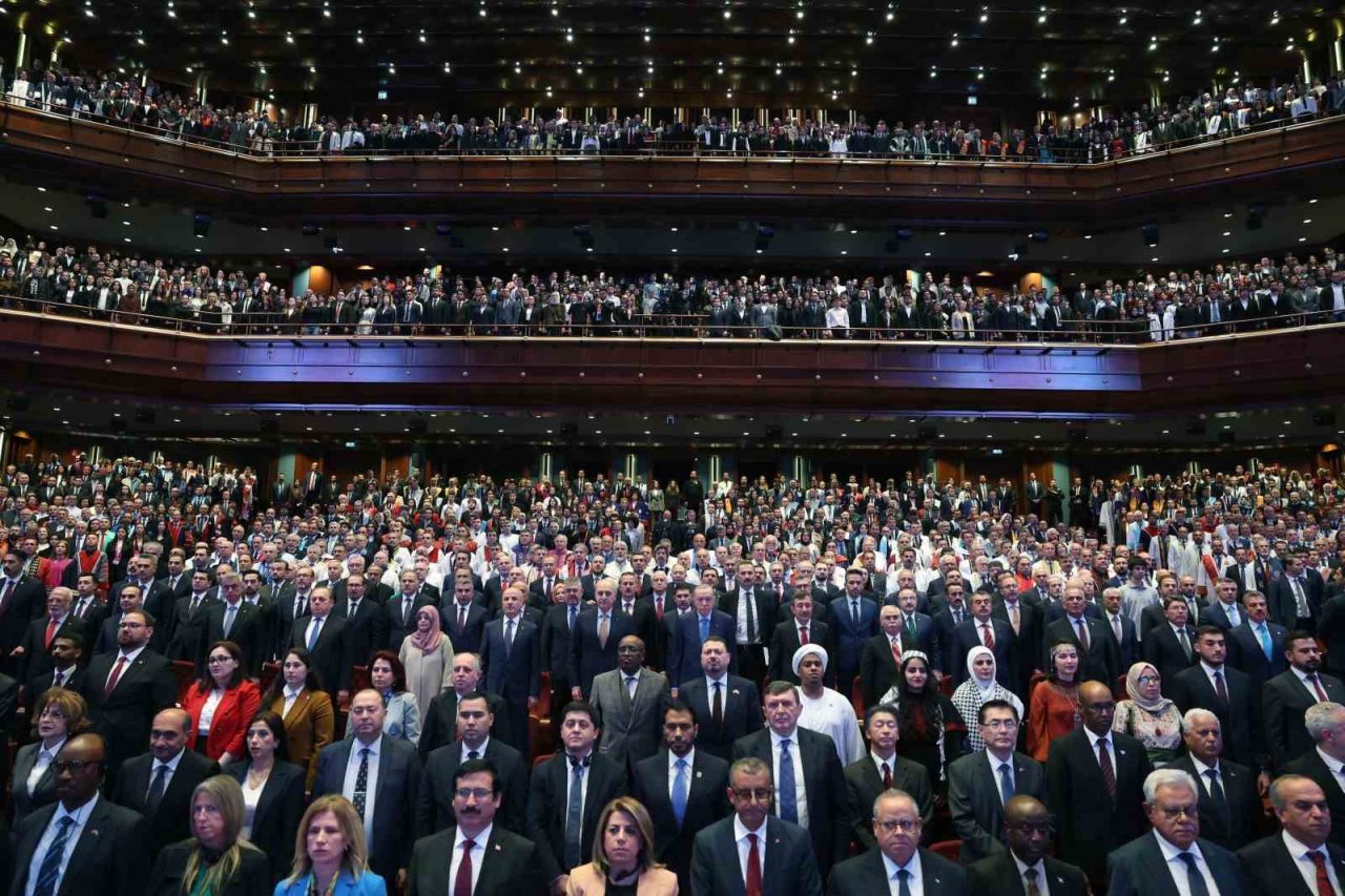 2 yıldır her türlü barbarlığa zulme, katliama, soykırıma rağmen dik ve dirayetli duruşlarından zerre kadar taviz vermeyen Filistinlileri hürmetle selamladığını ifade eden Erdoğan, “Türkiye dün olduğu gibi bugün ve yarın da Filistin halkının yanında olacak onları asla yalnız bırakmayacaktır. Rabbim anlaşmayı Filistin halkı için hayırlara vesile kılsın diyorum. Toprağa düşen 67 binden fazla şehidimize Allah’tan rahmet diliyorum. Bizler hepimiz köklü bir mazinin büyük bir medeniyetin alim, arif ve eğitim kurumlarımızla çok zengin bir müktesebatın varisleriyiz. Bilhassa 11. yüzyıldan itibaren burası aklı vicdanla buluşturan ilmi hilm ile taçlandıran yeni eserlerin, yeni fikirlerin mahreç noktası olmuştur. Yani çıkış noktası olmuştur. İlmi yitik malı gören ecdadımız çağlar boyunca medeniyet bahçemizi ilim çiçekleriyle süslemiş dünyaya ve insanlığa yeni değerler hediye etmiştir” değerlendirmesini yaptı.