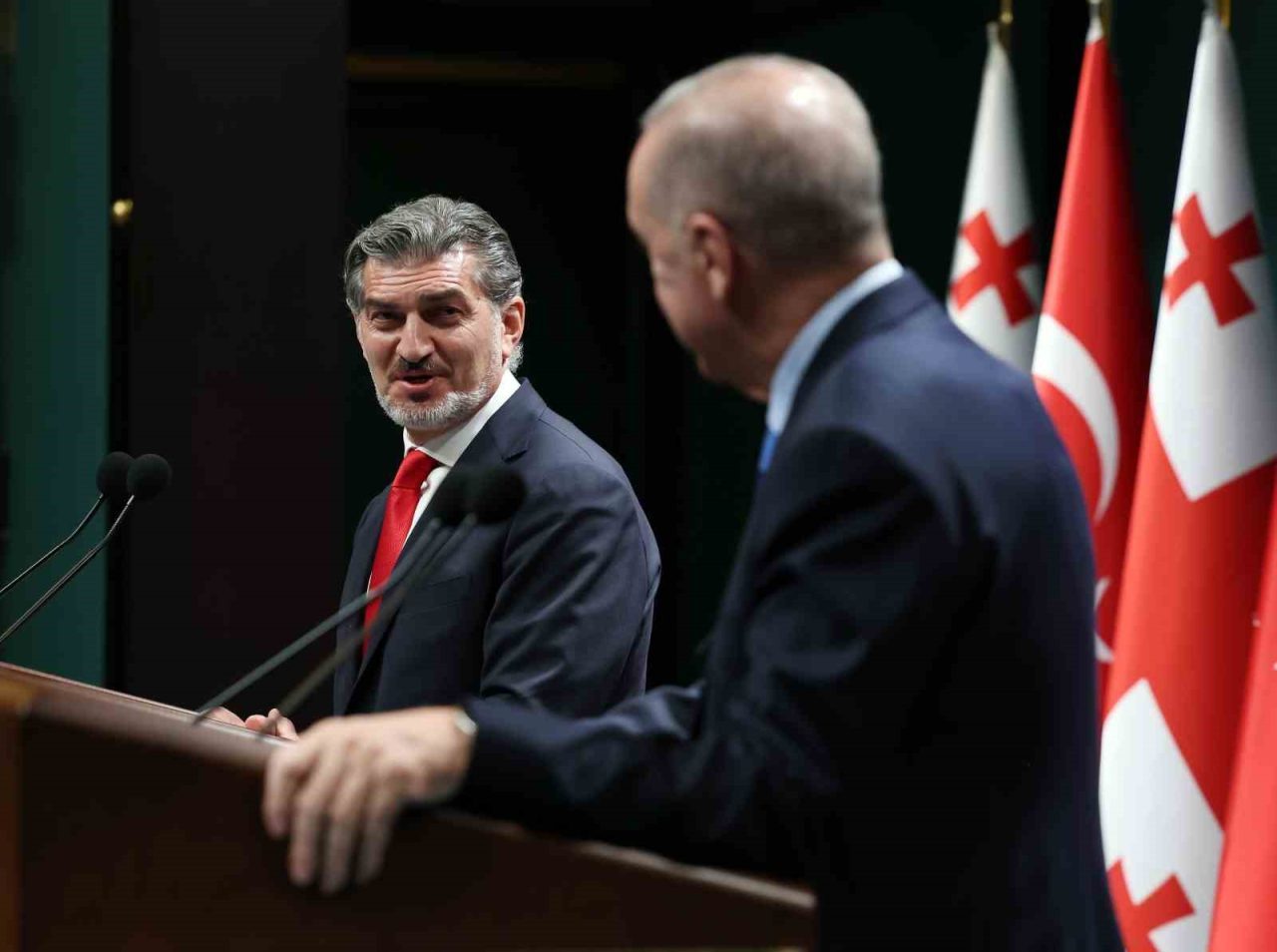 Cumhurbaşkanı Recep Tayyip Erdoğan, Gürcistan Cumhurbaşkanı Mikheil Kavelaşvili ile Ortak Basın Toplantısı’nda yaptığı konuşmada, “Bilhassa ticaret ve yatırım ilişkilerimizi halklarımızın refahına katkı sunacak şekilde ilerletmeye devam edeceğiz. Ülkemizin 17 yıldır fasılasız olarak Gürcistan’ın en büyük ticaret ortağı olması, ticari ilişkilerimizin sağlam temeller üzerine kurulu olduğunun açık ispatıdır” dedi.