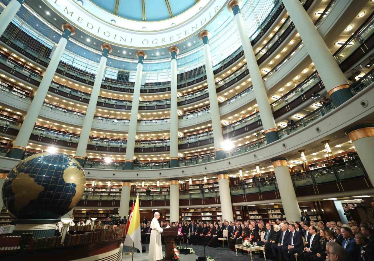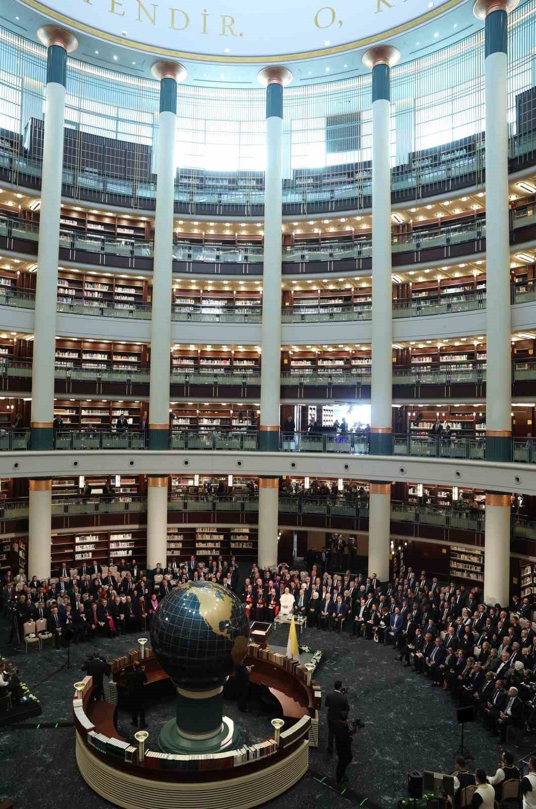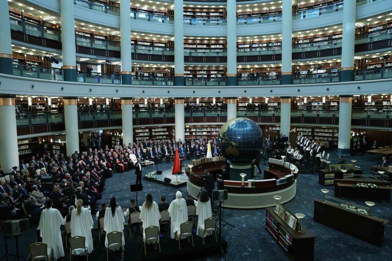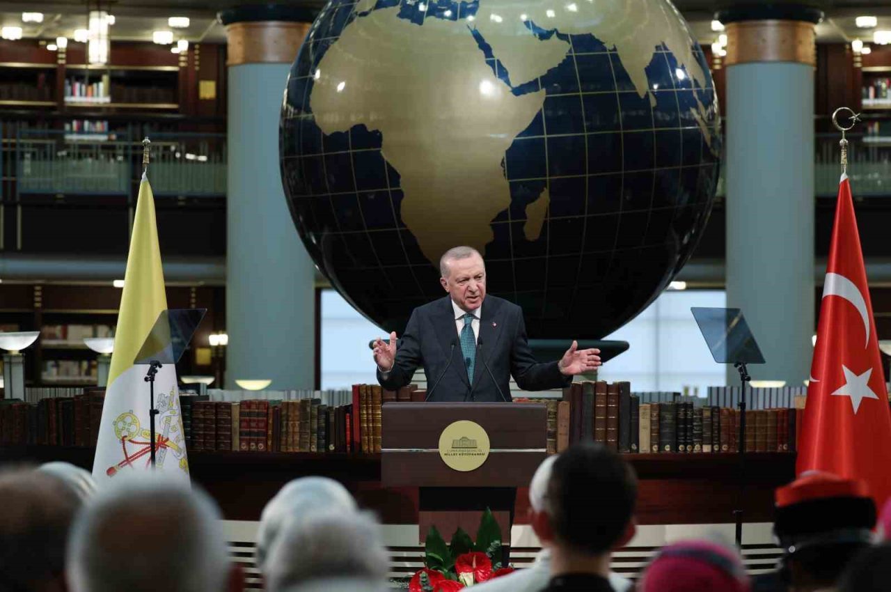 Cumhurbaşkanı Recep Tayyip Erdoğan, Vatikan Devlet Başkanı Papa 14. Leo Cumhurbaşkanlığı Millet Kütüphanesi Cihannüma Salonun’da Davetlilere hitap etti.