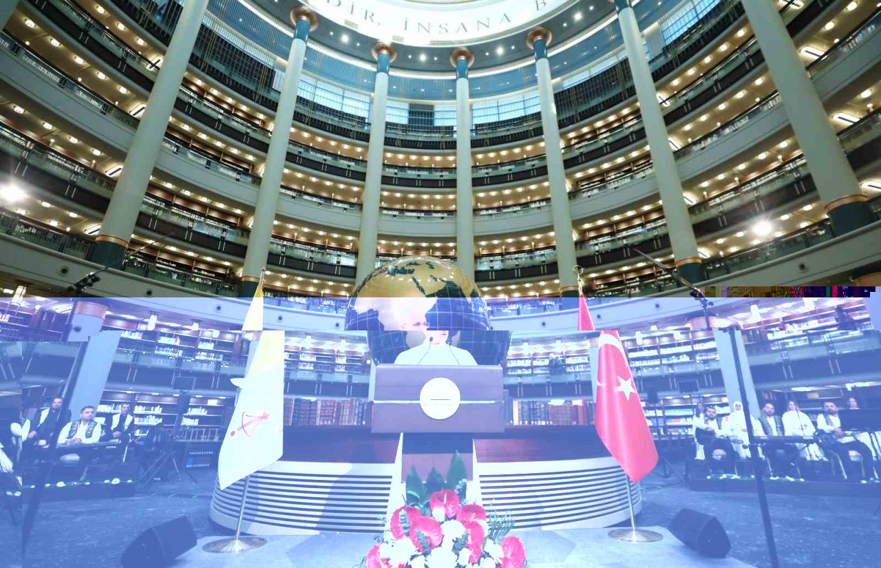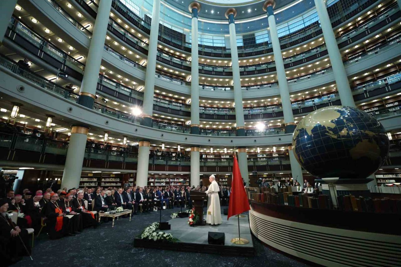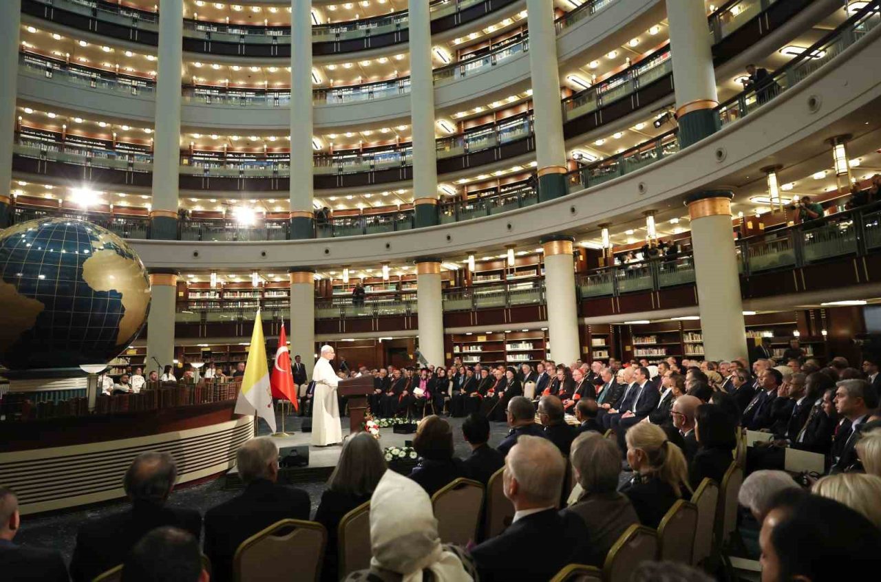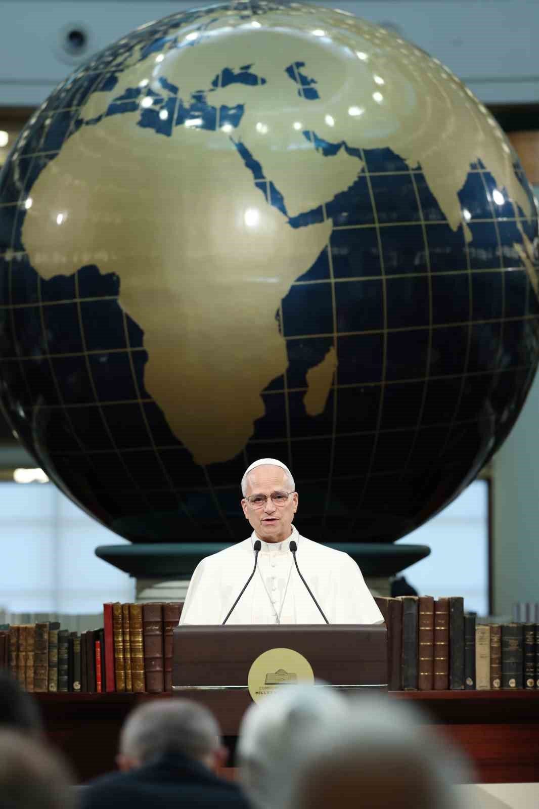 Cumhurbaşkanı Recep Tayyip Erdoğan, Vatikan Devlet Başkanı Papa 14. Leo Cumhurbaşkanlığı Millet Kütüphanesi Cihannüma Salonun’da Davetlilere hitap etti.