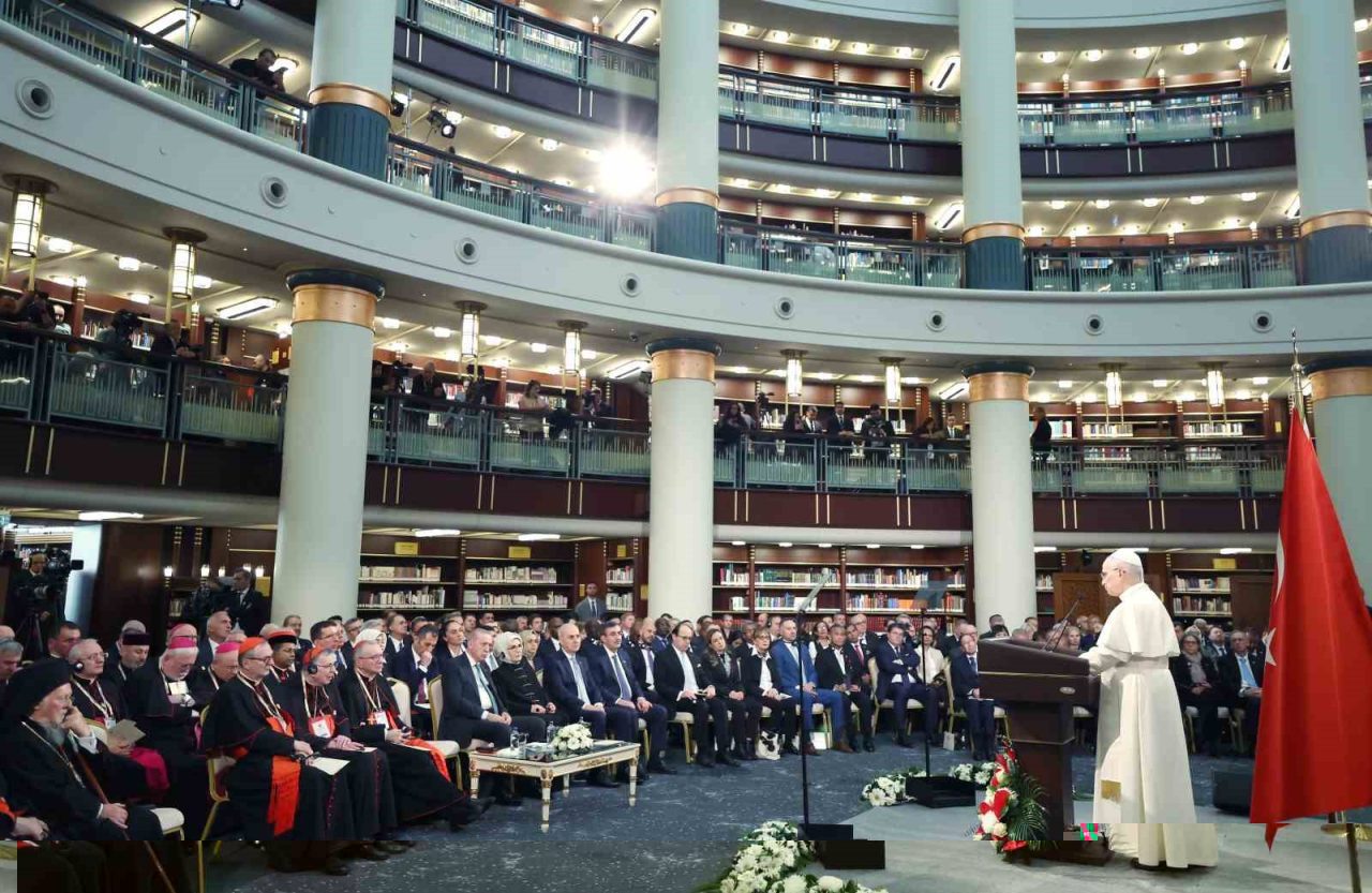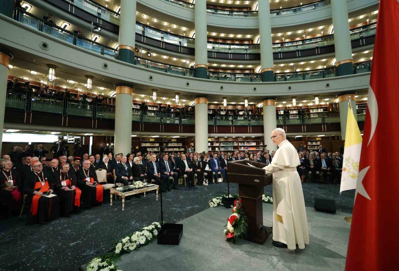 Cumhurbaşkanı Erdoğan, 14. Leo’nun ziyaretinin önemine dikkat çektiği konuşmasında,” yüzyıllardır farklı inançlara ait ibadethanelerin kandillerinin aynı semayı aydınlattığı Türkiye’yi ziyareti hem ülkemizin özel konumuna hem de ortak değerlerimize dikkat çeken anlamlı bir vesiledir. Biz de farklı kültür ve medeniyetlerin bir arada, yan yana ve huzur içinde yaşadığı bir tarihin mirasçıları olarak küresel barış ve istikrar ortamının serpilmesi için üzerimize ne düşüyorsa yapıyoruz ve yapacağız” dedi.