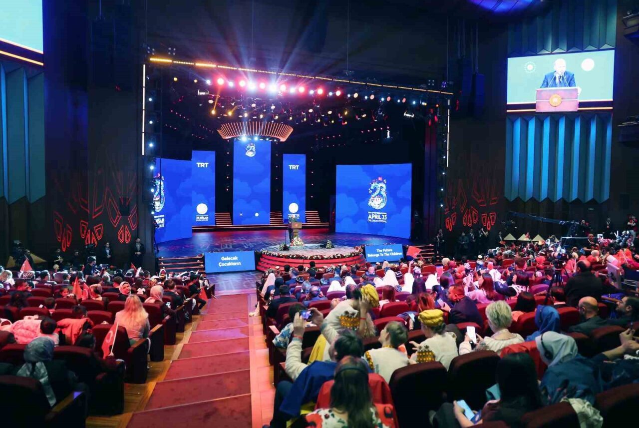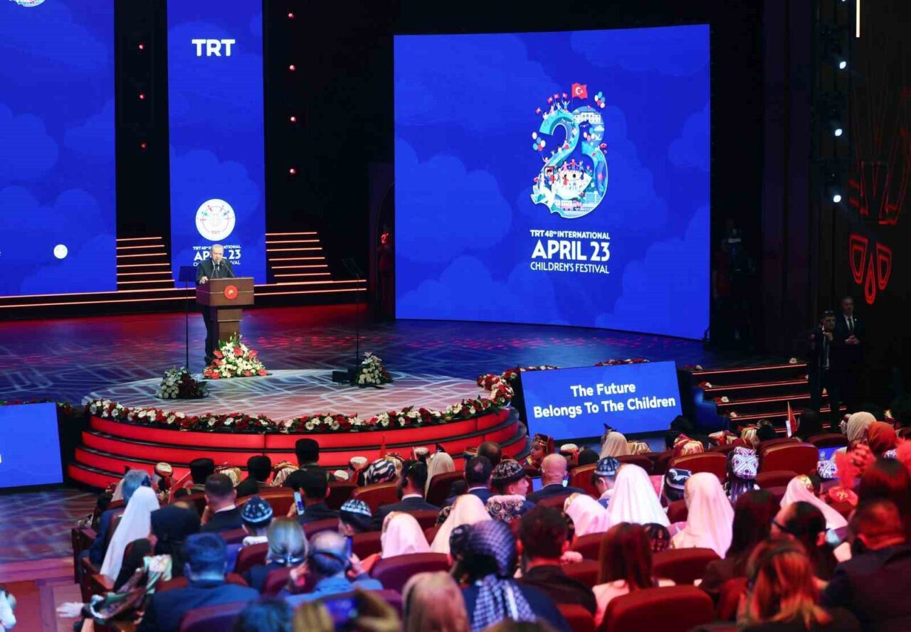 Cumhurbaşkanı Recep Tayyip Erdoğan, TRT 48. Uluslararası 23 Nisan Çocuk Şenliği Gala Programı’na katıldı. Programda konuşan Cumhurbaşkanı Erdoğan, “Ülkemizdeki, gönül coğrafyamızdaki ve dünyanın tamamındaki çocuklara barış dolu, mutluluk dolu bir hayat temenni ediyorum. Bilhassa savaş ve çatışmaların yükünü minik omuzlarında taşımak zorunda kalan Filistinli, Lübnanlı çocuklara buradan selam ve sevgilerimi gönderiyorum. 23 Nisan Çocuk Bayramı, dünyada çocuklara armağan edilmiş ilk ve tek bayramdır. Bu bayramı sizlere armağan eden Gazi Mustafa Kemal’le birlikte tüm devlet büyüklerimizi şehit ve gazilerimizi bir kere daha şükranla anıyorum. Biraz önce ellerinde ülkelerinin bayraklarıyla bizleri karşılayan tüm çocuklarımızın oluşturduğu bir çiçek bahçesinden geçtik. Ümidin, baharın, mutluluğun müjdesiyle dolup taşan bu çiçek bahçesinde bizleri siz evlatlarımızla bir araya getiren TRT yönetimine teşekkür ediyorum. ‘Gelecek çocukların’ temasıyla bu yıl 48’incisi düzenlenen şenliklerin kendi evlatlarımızın yanı sıra 23 Nisan coşkumuzu paylaşmak üzere şuan aramızda bulunan 27 ülkeden 490 misafirimiz içinde hayırlı olmasını diliyorum” ifadelerini kullandı.